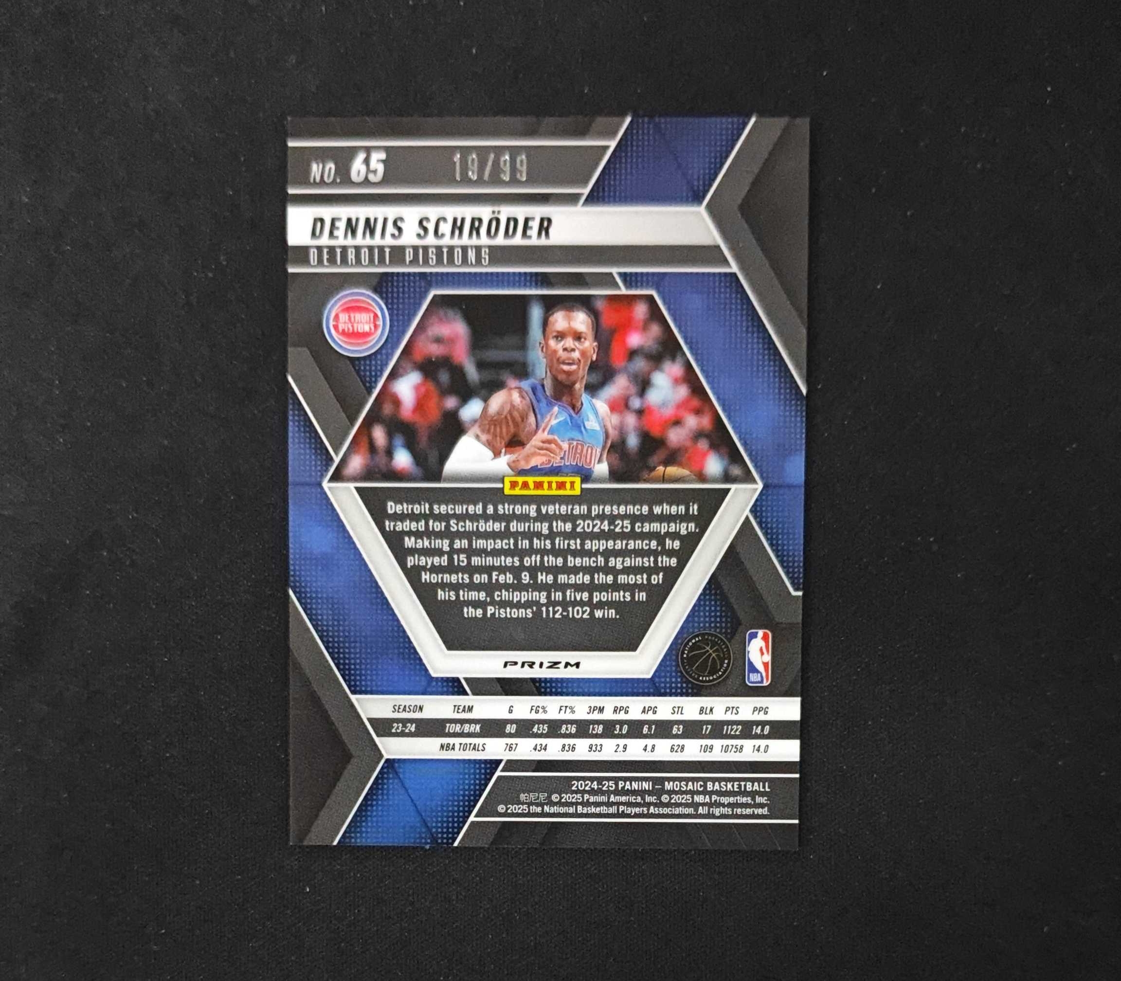 2024-25 Panini Mosaic Dennis Schroder 【SC拍卖】马赛克 活塞 施罗德 99编 红泡泡 收藏必备(龚哥)