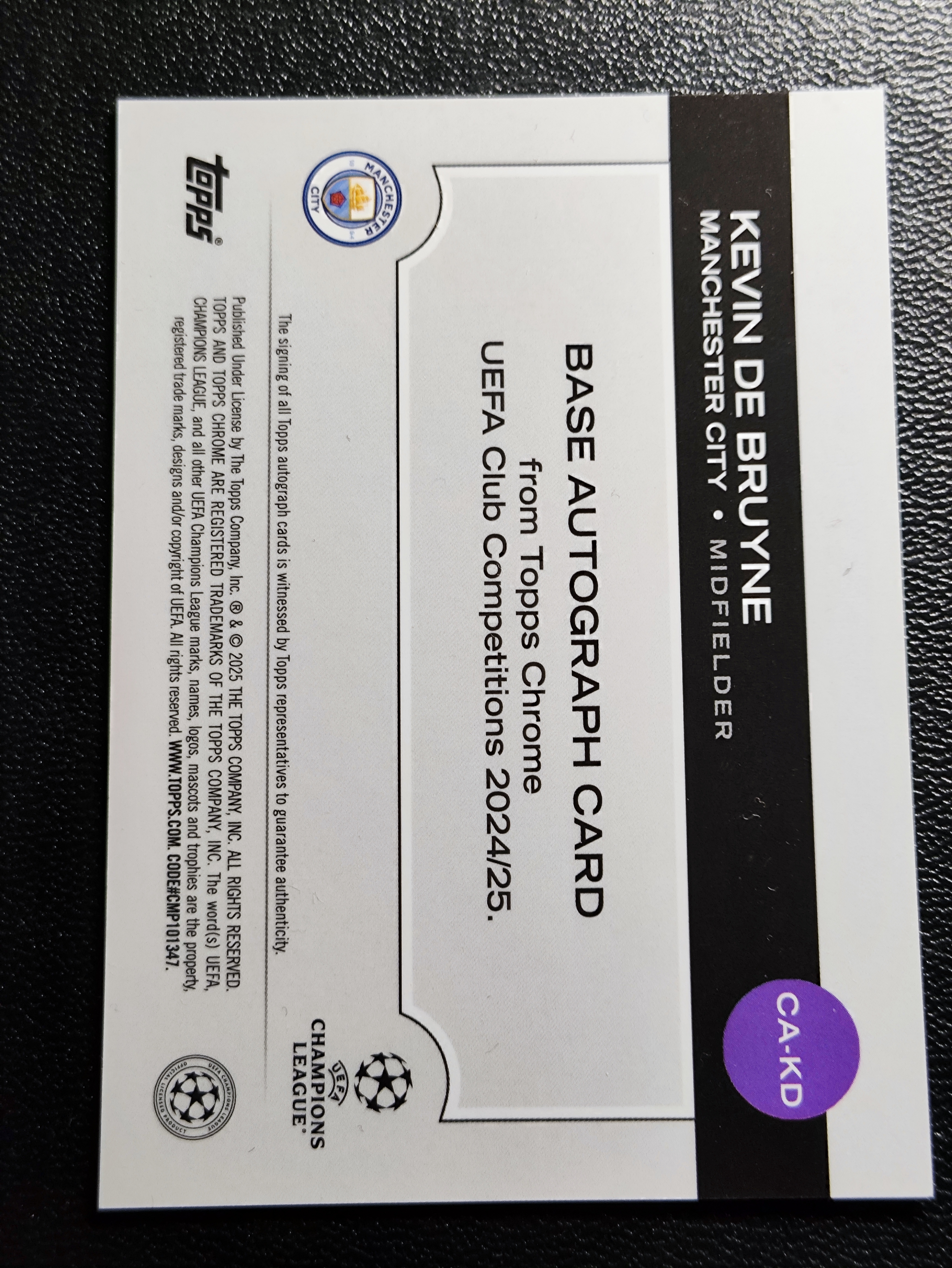 2024-25 Topps Chrome Kevin De Bruyne TC 德布劳内 丁丁 曼彻斯特城 曼城 08/10编 正黑折 签字 完美墨迹 超低编 最正一版TC 极稀有 哈兰德B席队友 稀有