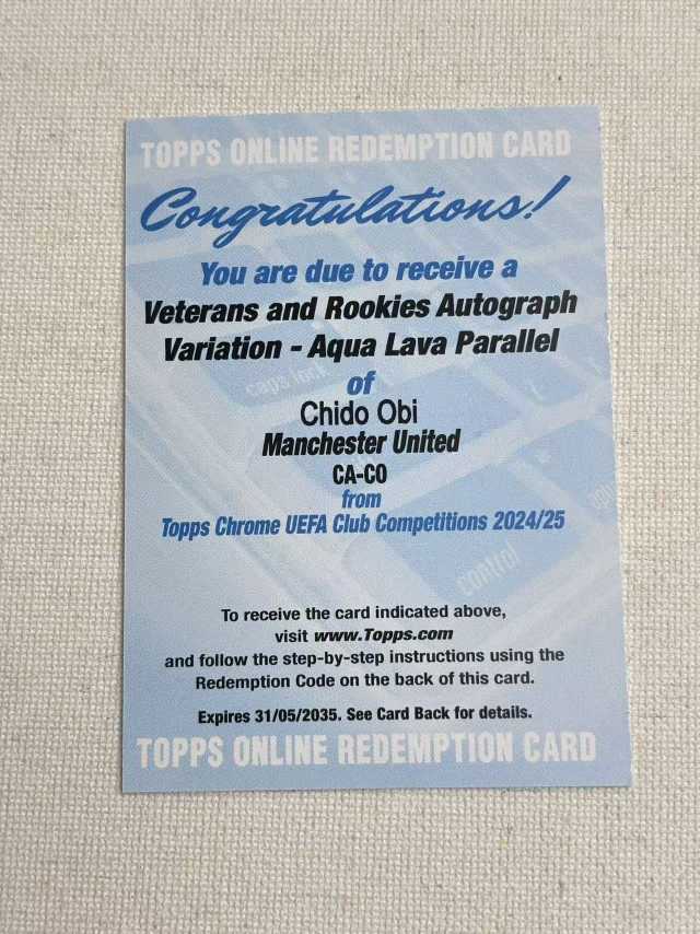 【鬼】2024-25 Topps Chrome Chido Obi RC 欧冠TC 曼联 奇多 奥比 马丁 新秀 签字 签名 青熔岩折 199编 交换板 收藏必备