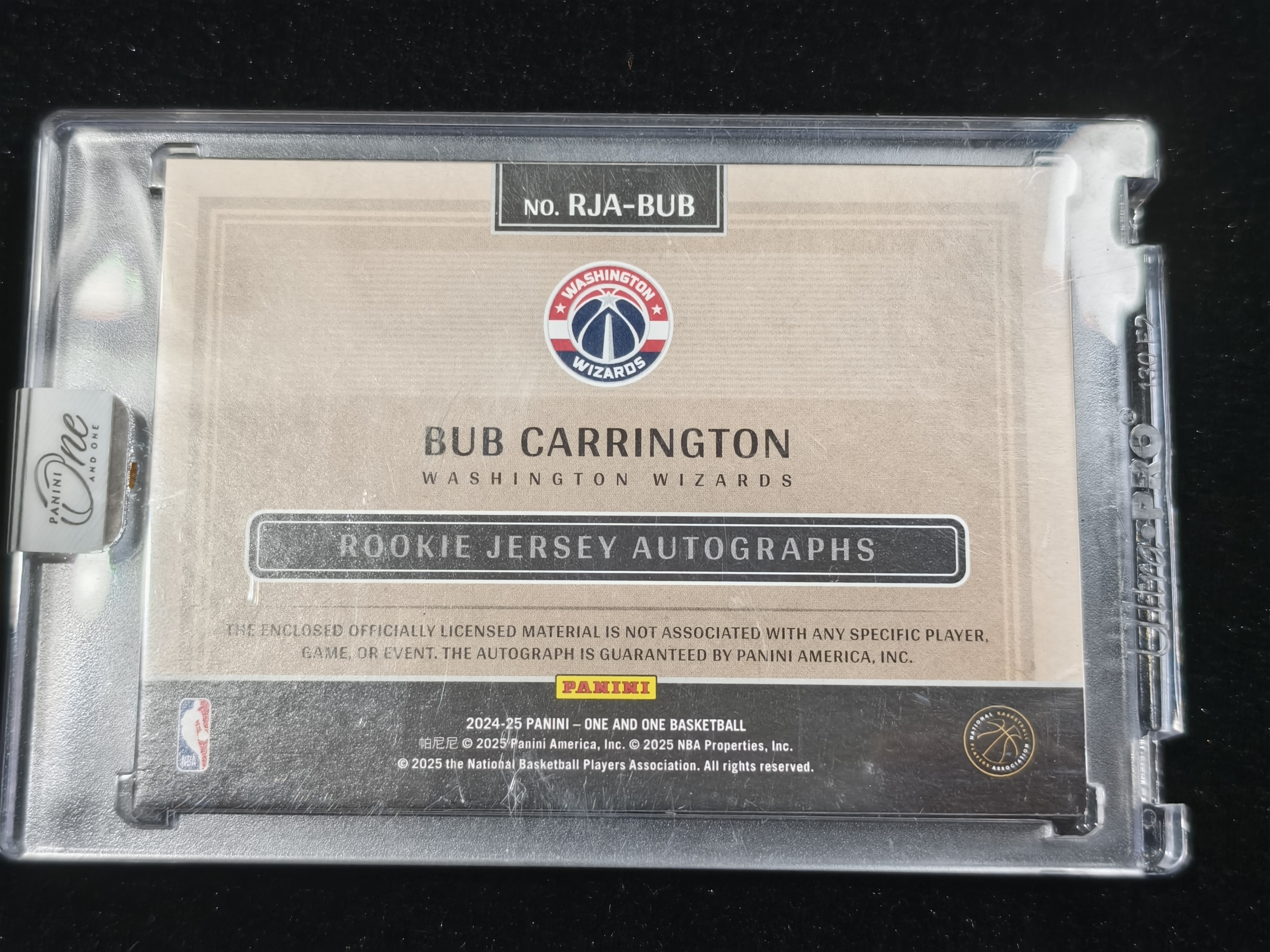 2024-25 Panini One and One Bub Carrington 卡林顿 卡灵顿 RC 新秀 49/99编 银平行 卡签 RPA 球衣物料签字 奇才 原封砖 看涨 机长代拍 4077