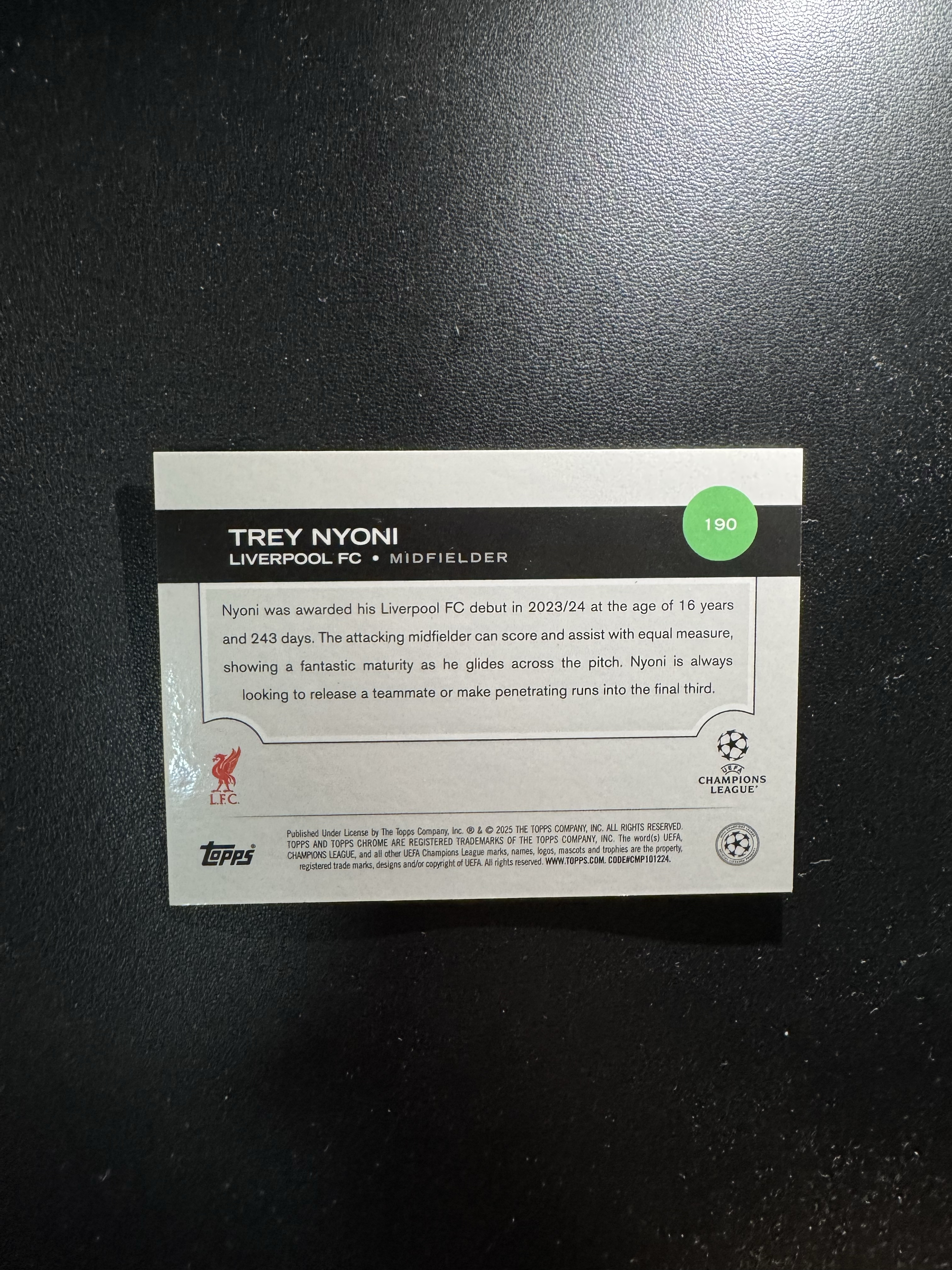 2024-25 Topps Chrome Chrome Trey Nyoni RC 欧冠 蓝宝石 TC 特雷 尼奥尼 50编 金碎冰折 新秀 利物浦 未来可期 卡品如图
