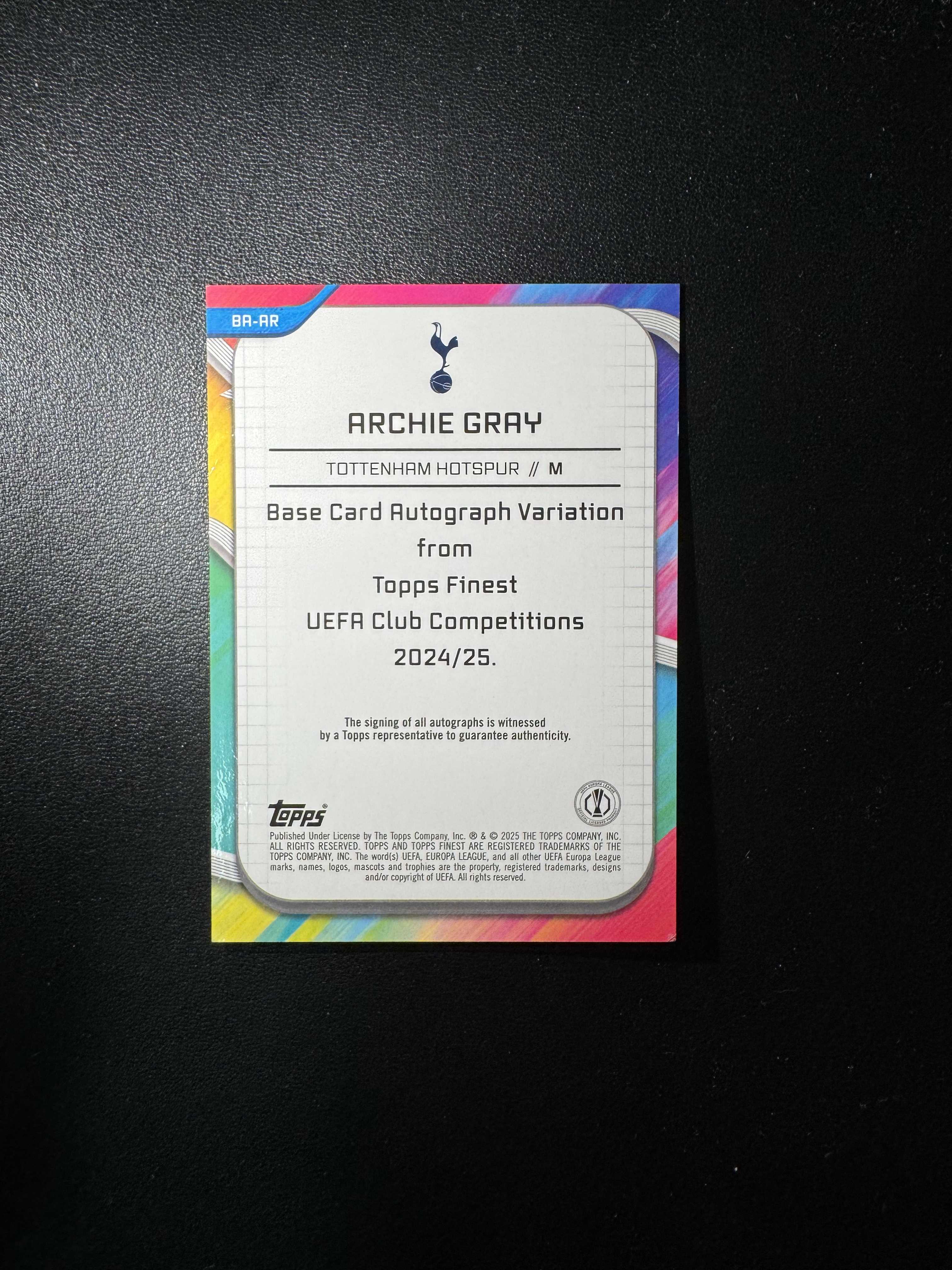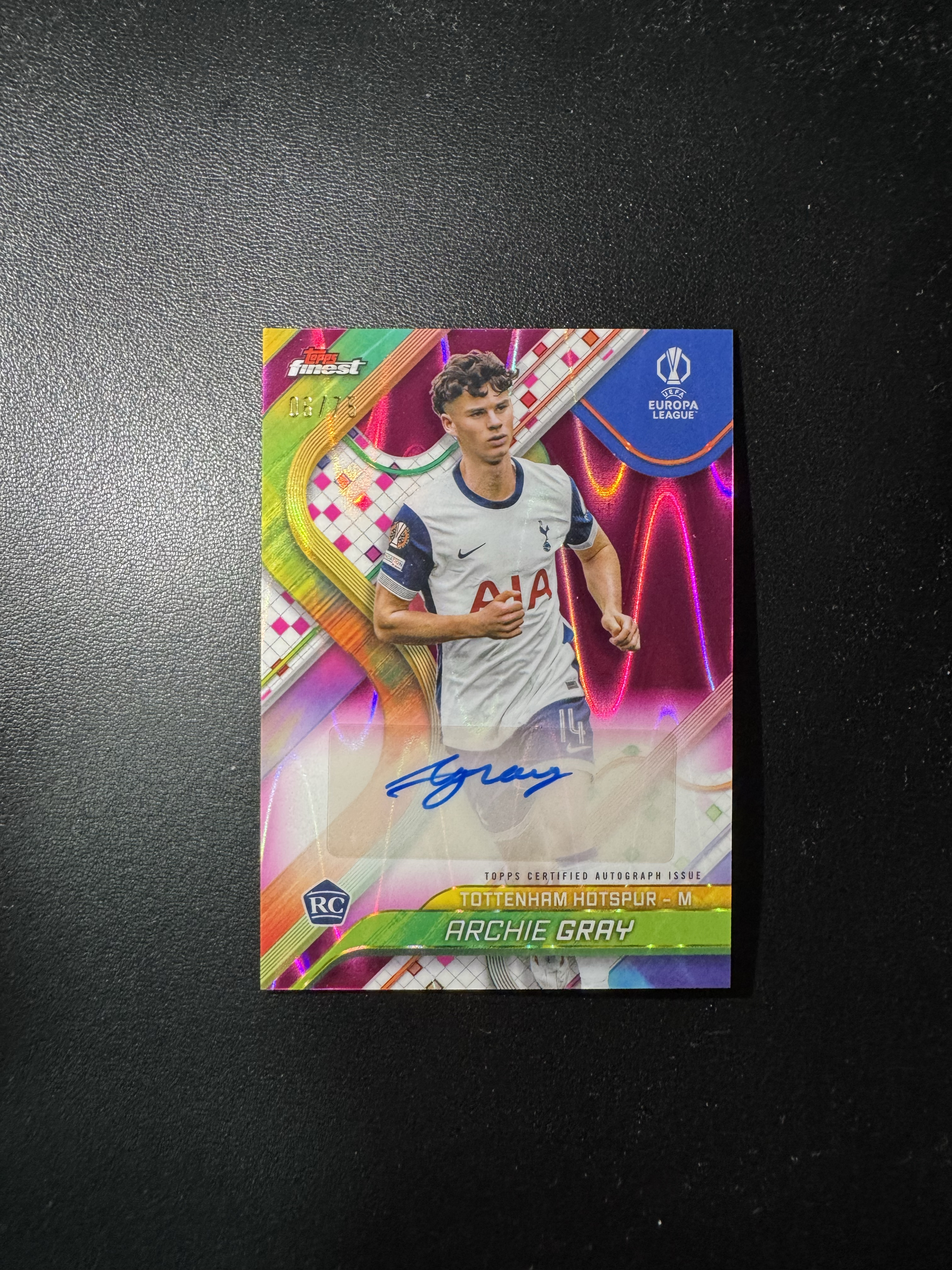 2025 Topps Finest ARCHIE GRAY RC 欧冠Finest 阿奇 格雷 热刺 75编 粉变形虫折 折射 签字 签名 新秀RC 未来可期 卡品如图