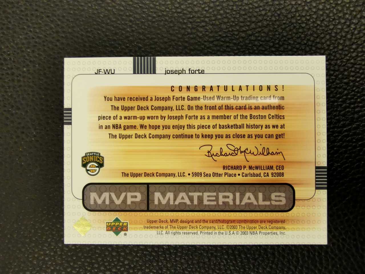 【金矿拍卖】2003 upper deck ud mvp materials 超音速 约瑟夫福特 Joseph forte 落场球衣切割 小天