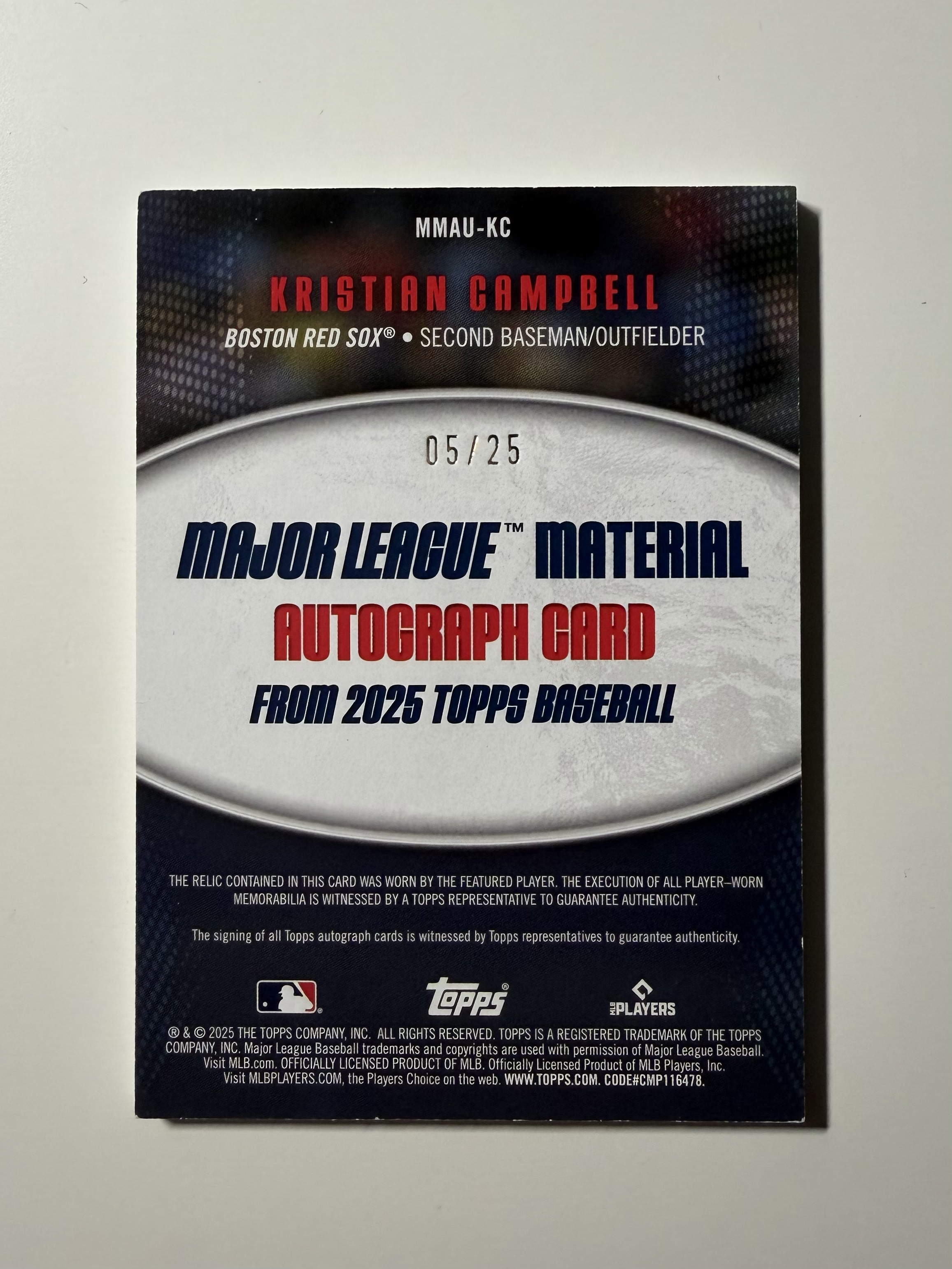 2025 Topps 【锡安代卖】 累计照常 棒球mlb update Kristain Campbell 克里斯蒂安 坎贝尔 PA 物料签字 红袜超级新秀已上大联盟 25编 新秀RC 卡品如图 阿坚