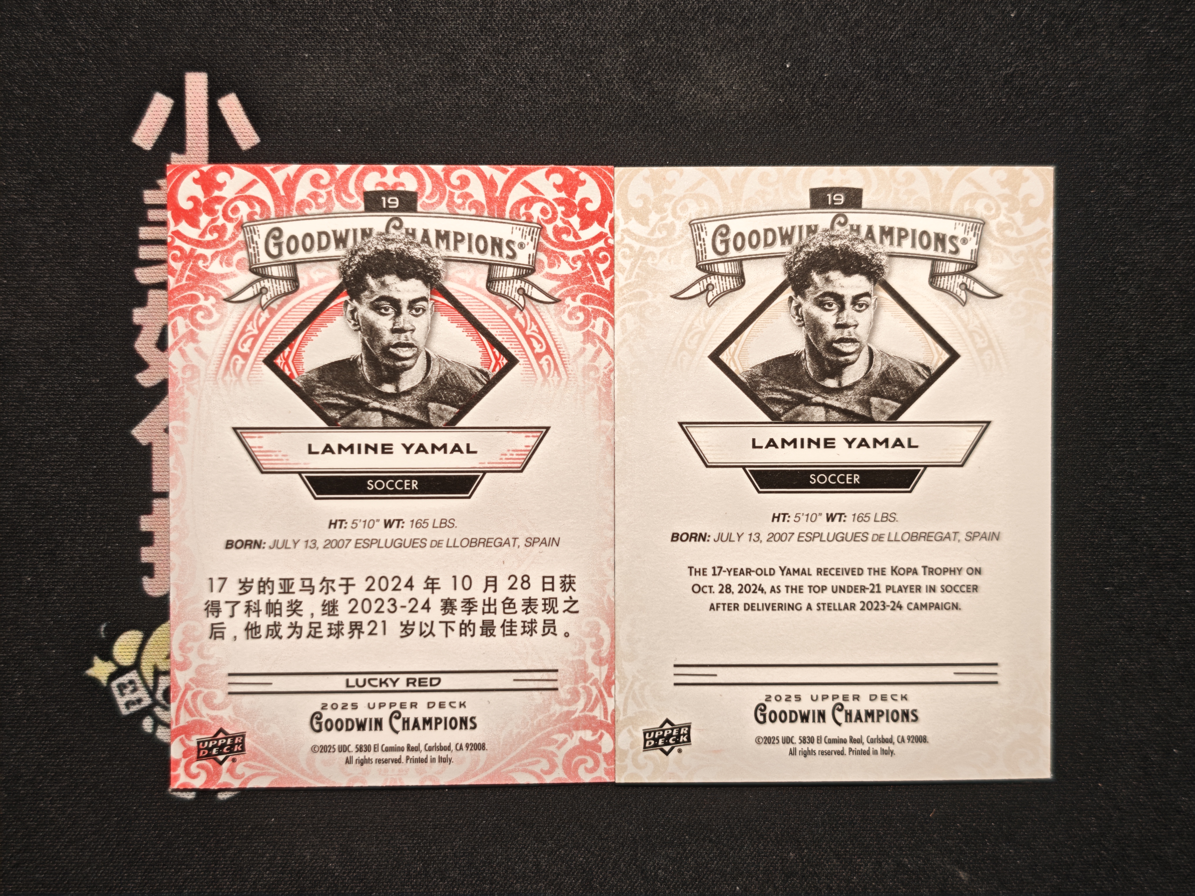 2025 Upper Deck GOODWIN CHAMPIONS Lamine Yamal 拉明 亚马尔 巴萨 西班牙 新秀次年 古德温 冠军 特卡 base 2张打包 专收必备 D总