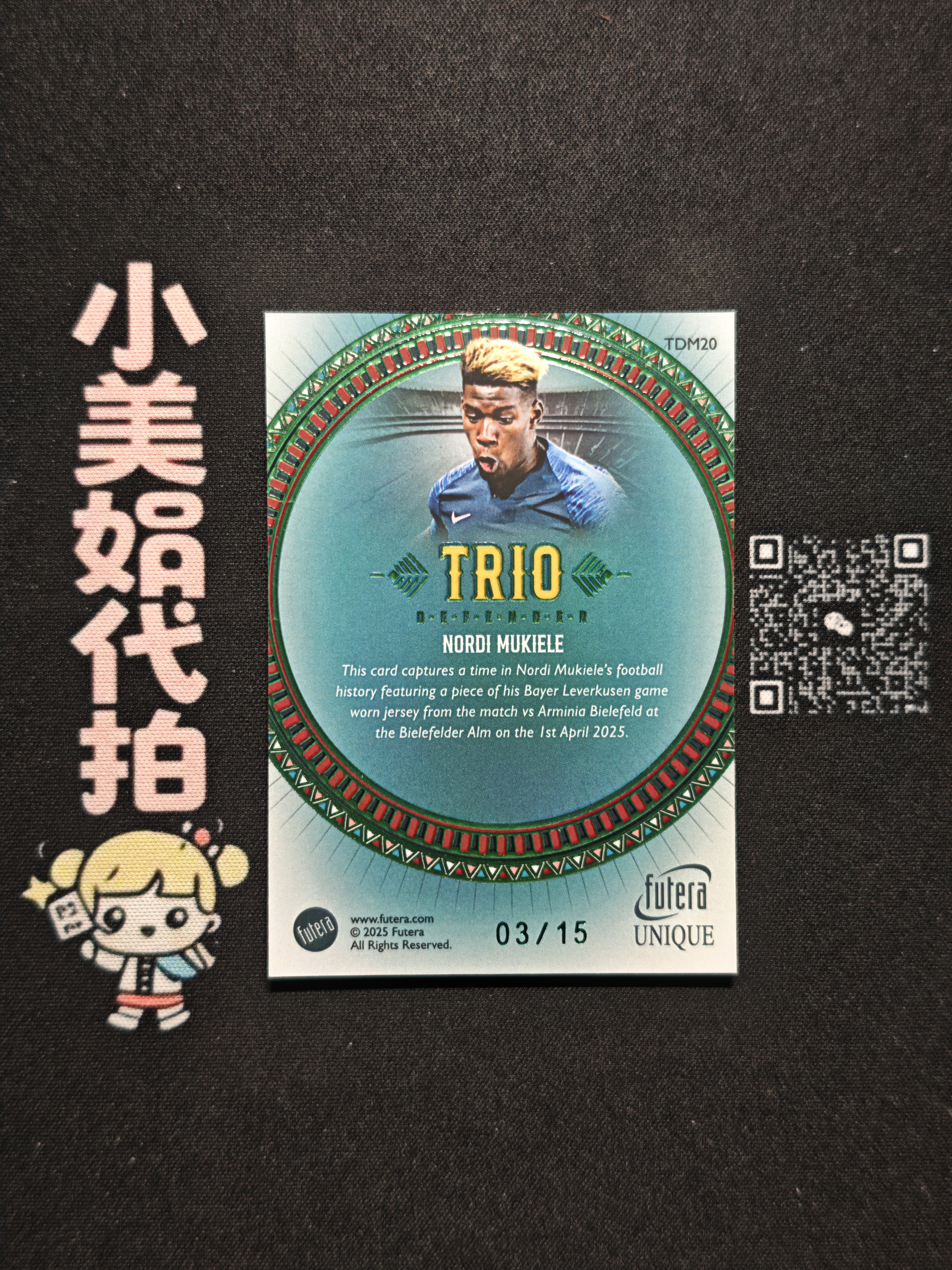 2025 Futera Futera Unique Nordi Mukiele 诺尔迪 米基莱 桑德兰 法国 福特拉 特卡 物料 切割 落场 GU 绿平行 03/15编 专收必备 W总