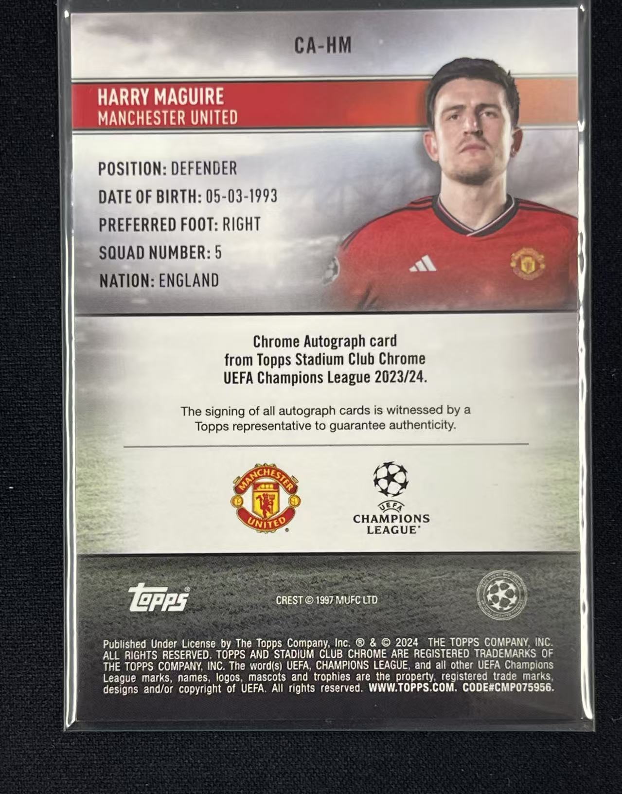 2023-24 Topps Stadium Club Chrome Harry Maguire #CA-HM 竞技场 马奎尔 曼联 银折 签字 贝勒21