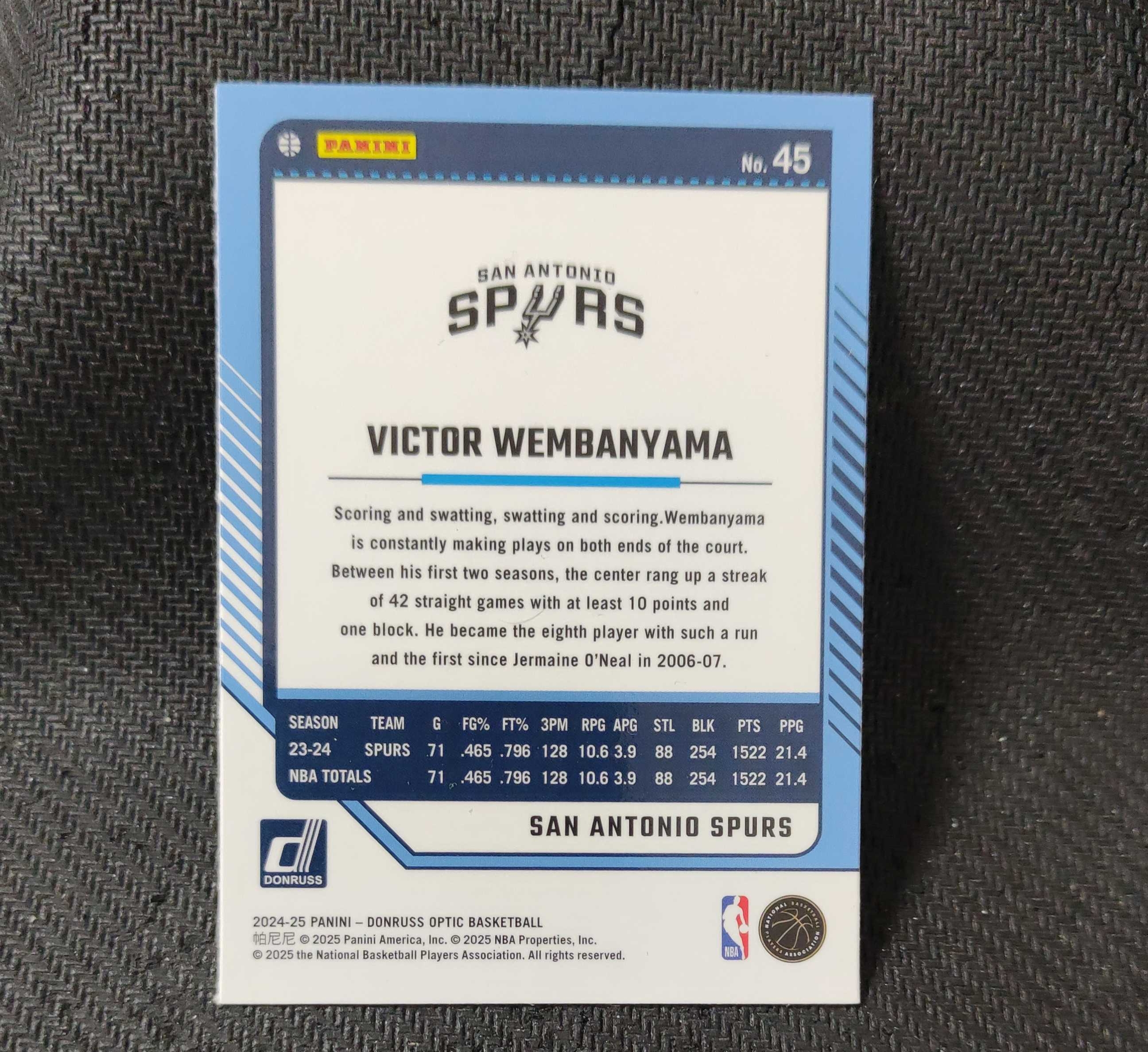 2024-25 Panini Optic Victor Wembanyama 维克托 文班亚马 马刺队 收藏必备 可累计 回收球星卡