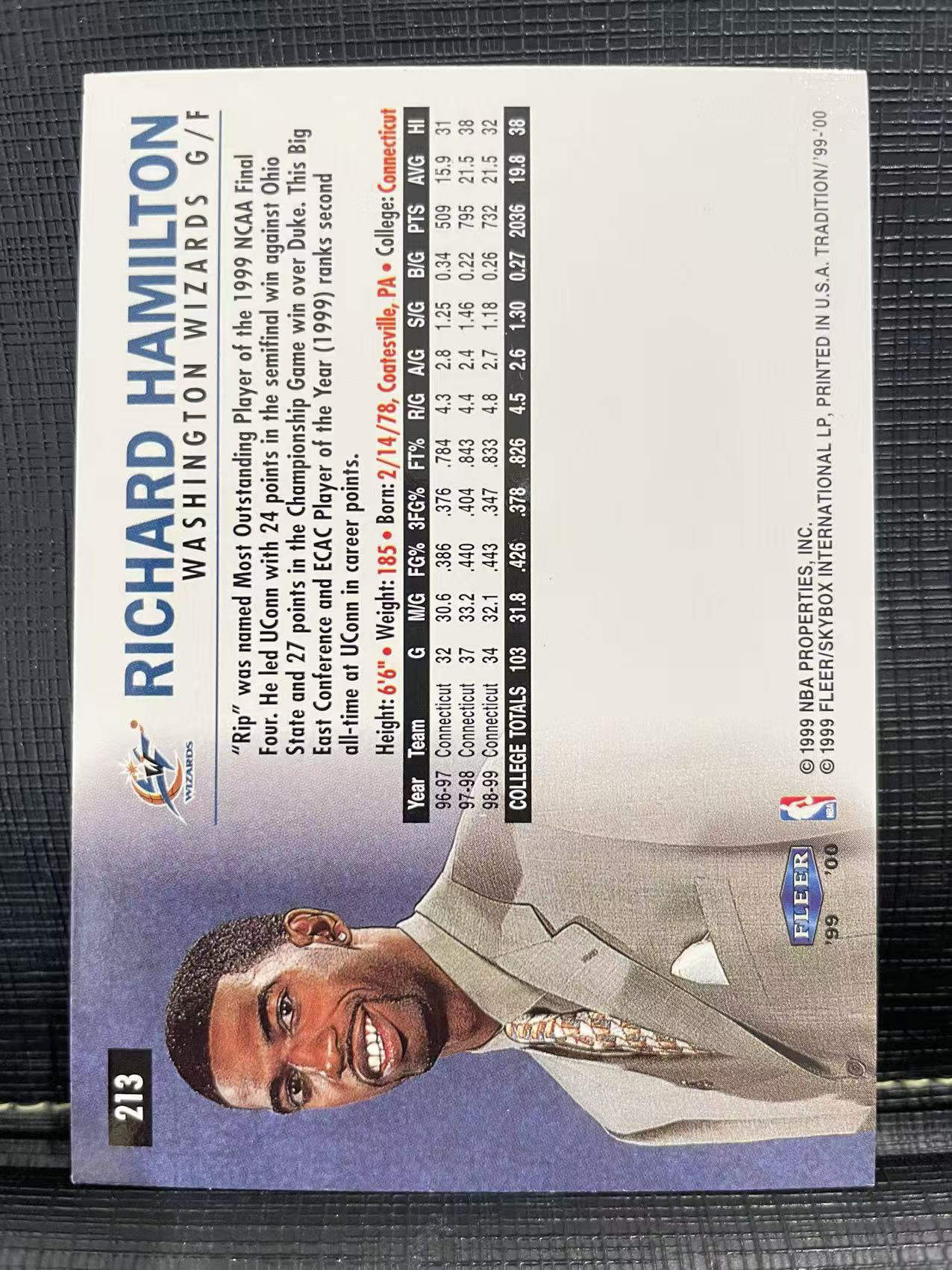 1999-00 Fleer Americana Richard Hamilton RC 奇才 汉密尔顿 新秀!选秀夜!定装照!绝版卡!还是老卡看着舒服!非常稀有!很有收藏价值💗设计精美 投资升值💗