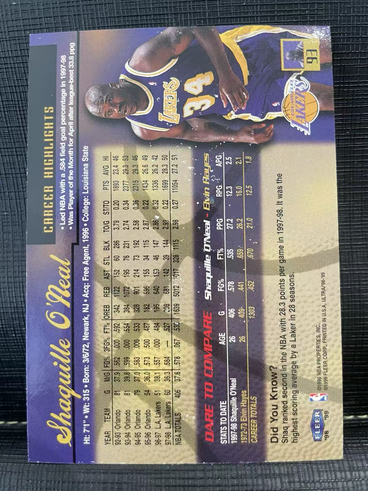 1998-99 Fleer Americana Shaquille O'Neal 湖人 大鲨鱼 奥尼尔 折射标!绝版卡!当年的经典系列之一!还是老卡看着舒服!非常稀有!很有收藏价值💗设计精美💗