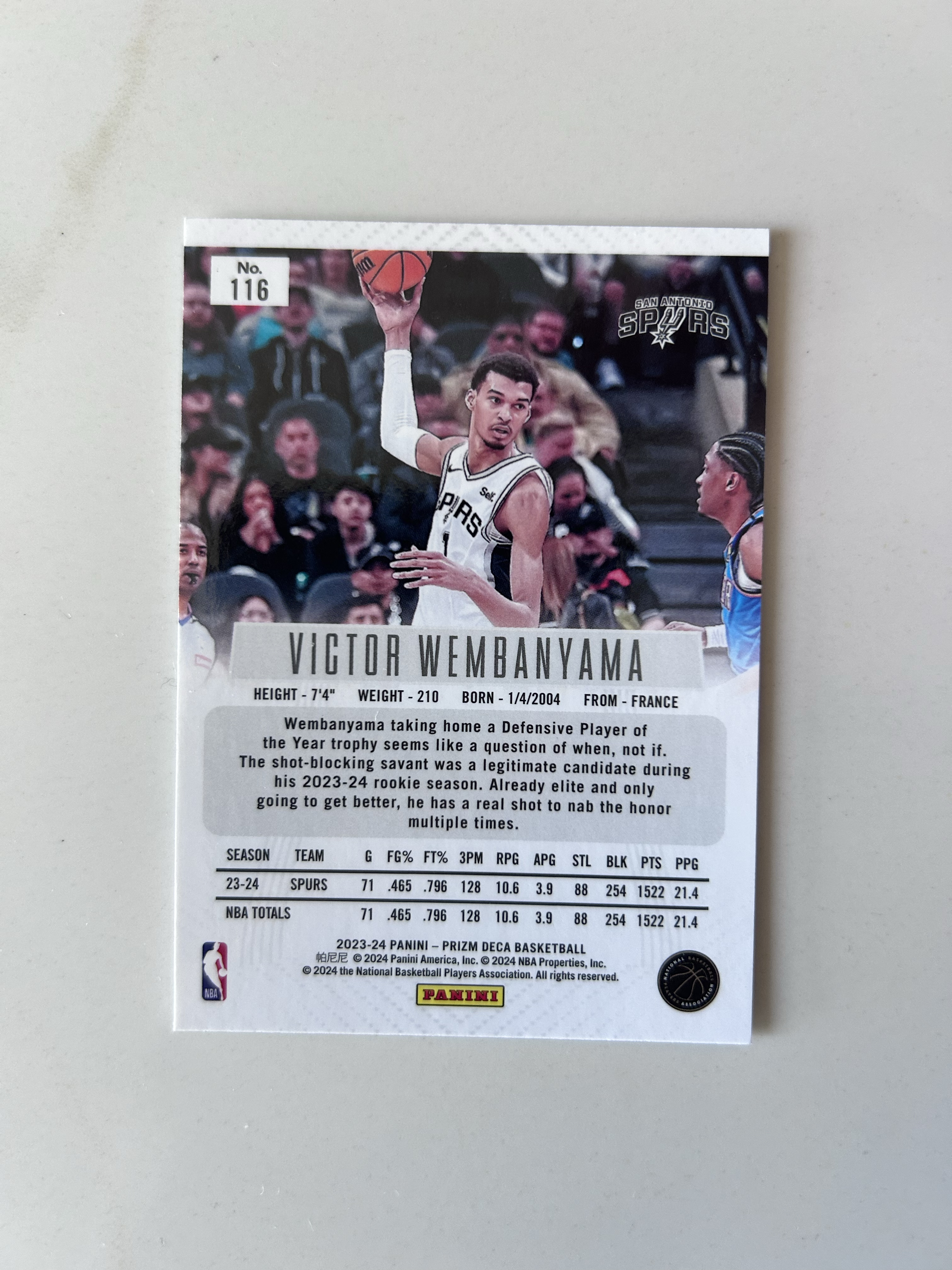 2023-24 Panini Prizm Deca Victor Wembanyama RC 马刺队 新秀 状元 维克托·文班亚马 base 表现佳 必飞 实卡精美 卡品如图 凑套收藏必入