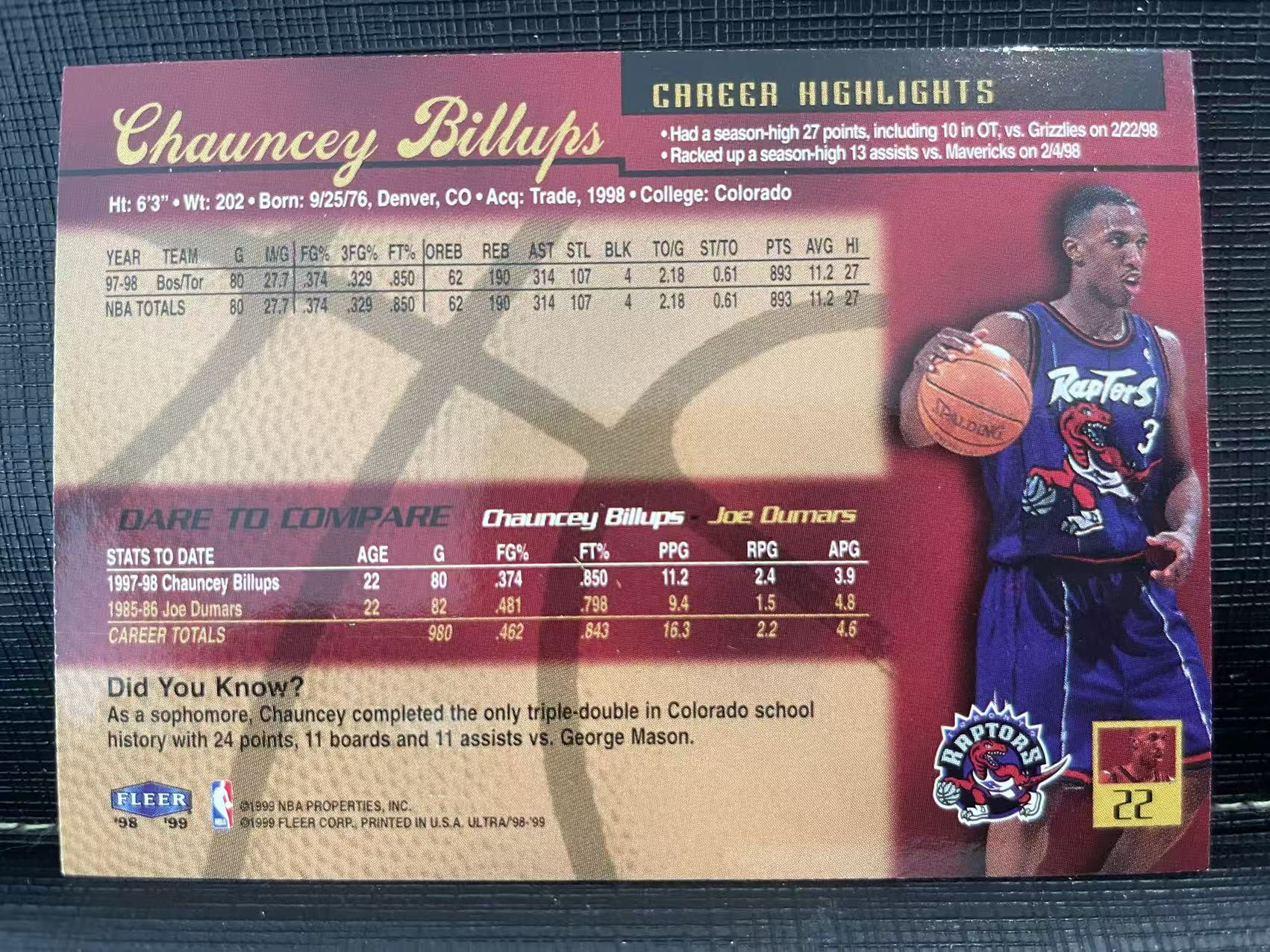 1998-99 Fleer Americana Chauncey Billups 猛龙 昌西 比卢普斯 折射标!绝版卡!当年的经典系列之一!还是老卡看着舒服!非常稀有!很有收藏价值💗设计精美💗