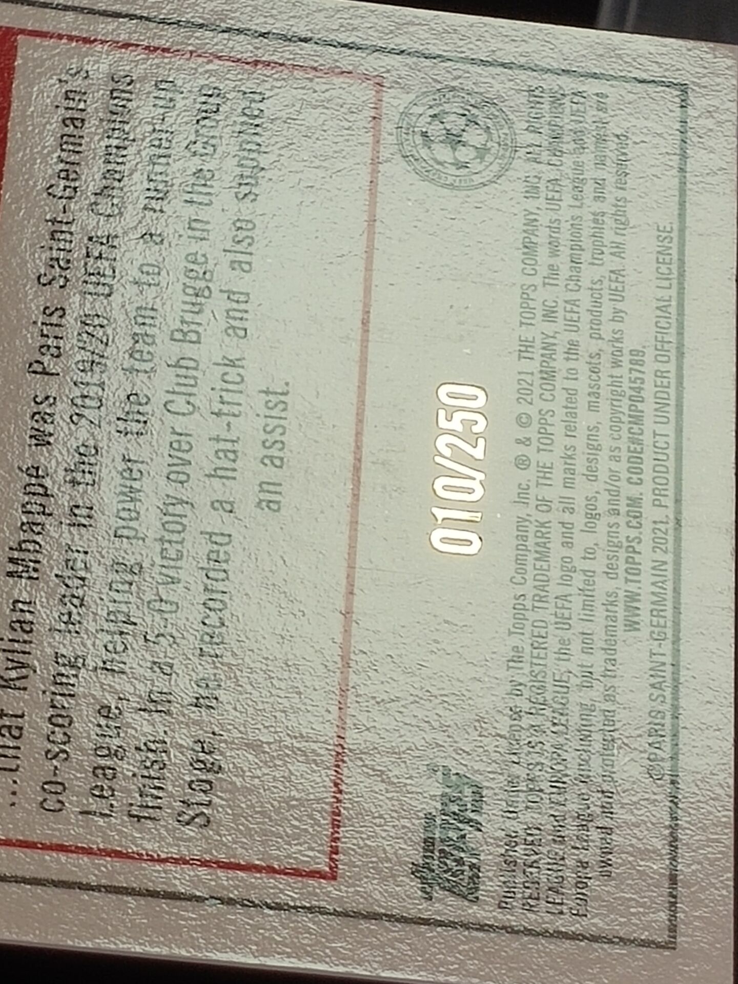 【浩行拍卖 截标预付82%】2021 topps merlin kylian mbappe 欧冠 梅林 巴黎圣日耳曼 基利安 姆巴佩 银碎冰折 折射 10/250编 专收必备 瑕疵看图「琛隐」1116P01緲