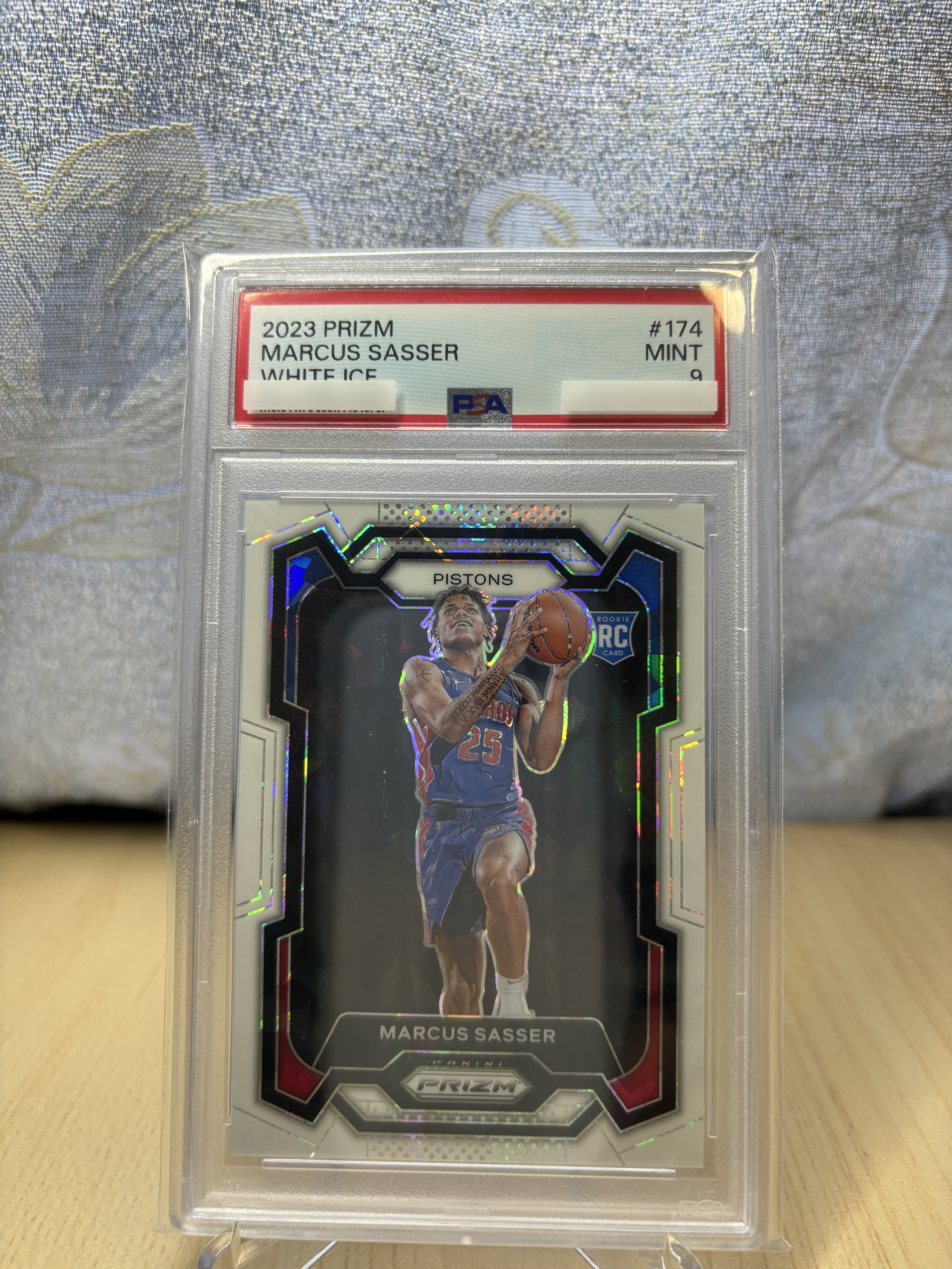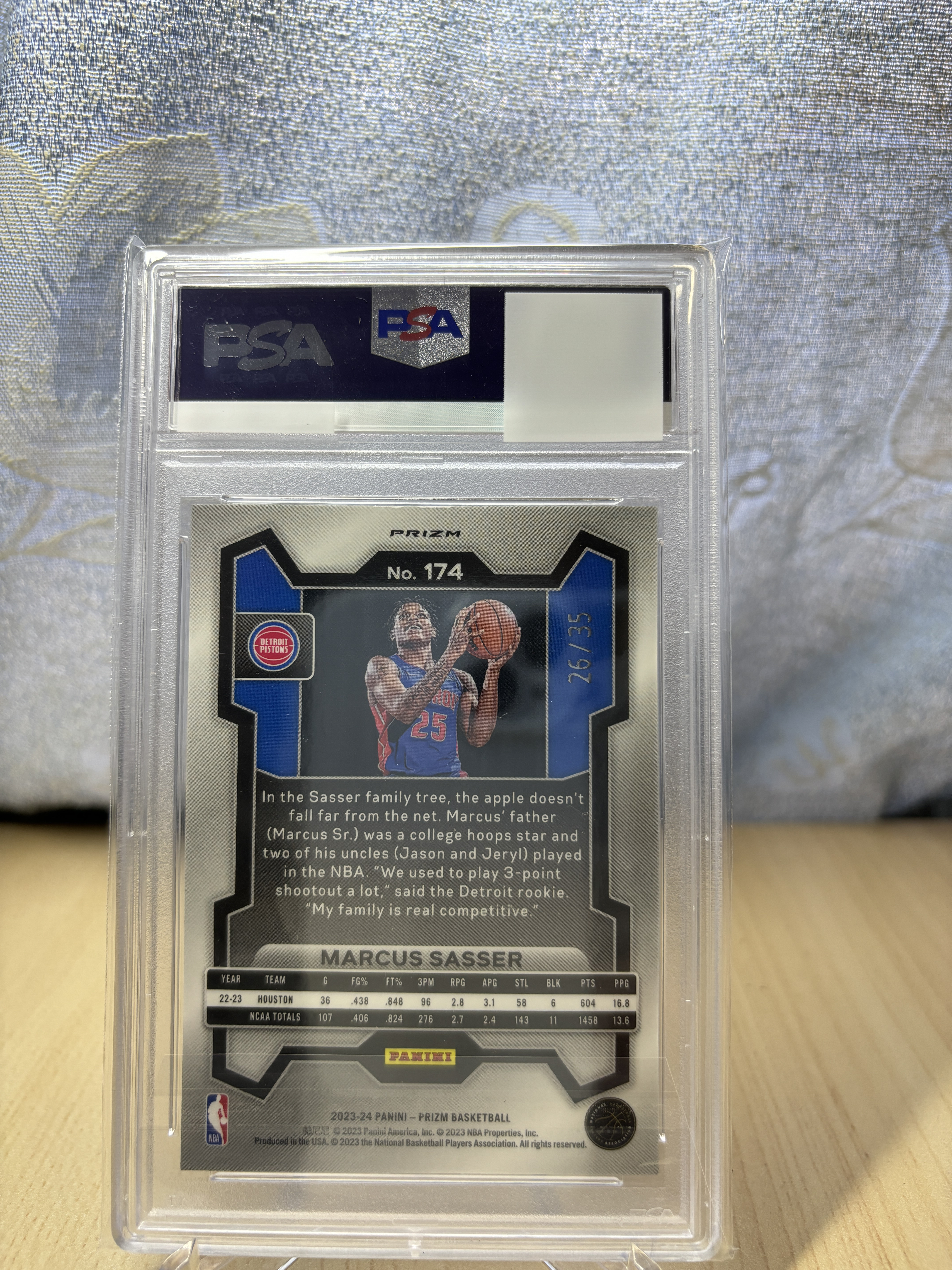2023-24 Panini Prizm Marcus Sasser RC 活塞 马库斯 萨瑟 新秀RC 26/35编 白闪折 PSA9分