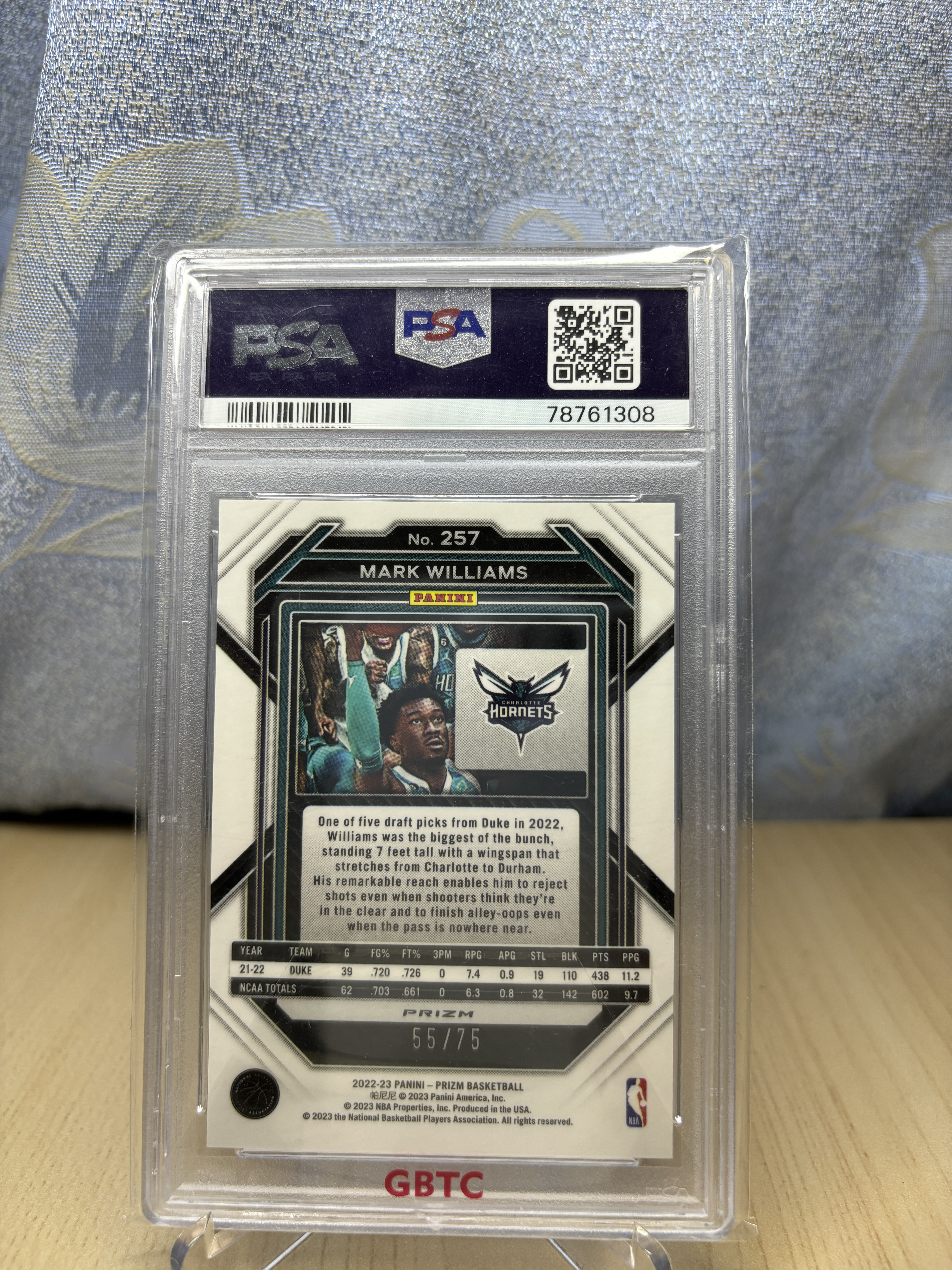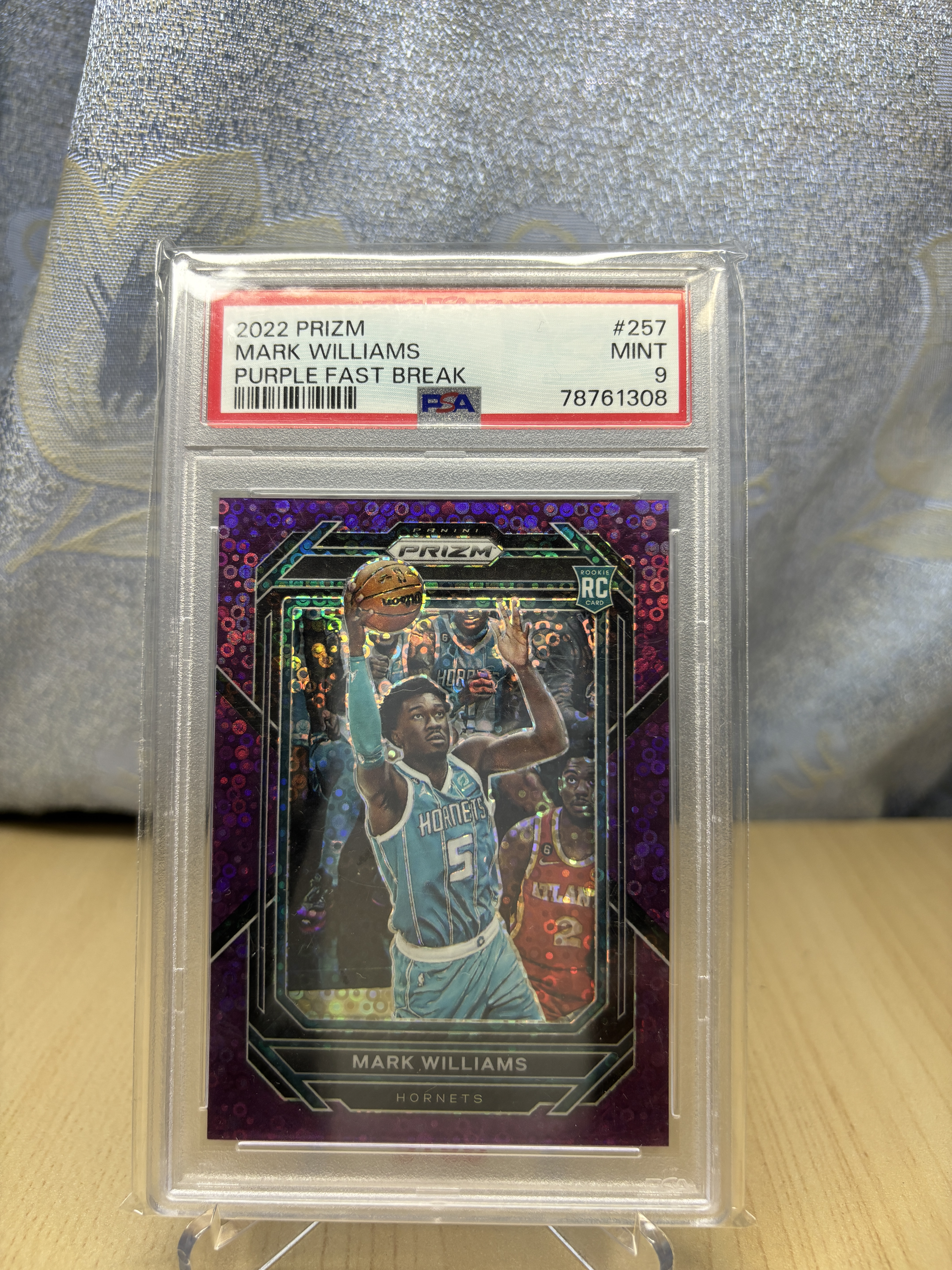 2022-23 Panini Prizm Mark Williams RC 黄蜂 马克 威廉姆斯 新秀RC 55/75编 紫泡泡折 PSA9分