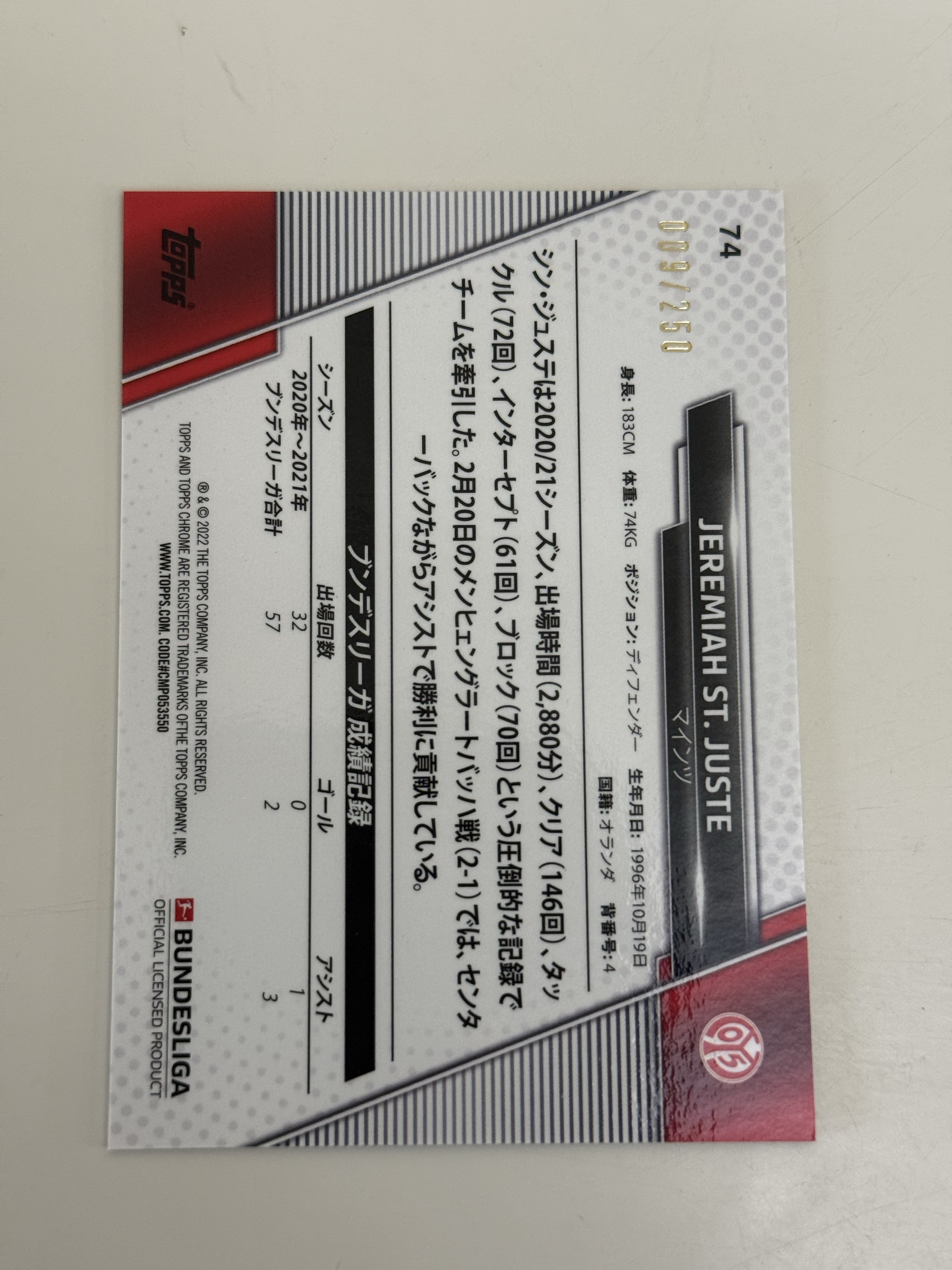 2023 Topps 樱花 Topps Finest 德甲 杰里 圣朱斯特 美因茨 银棋盘折 250编 JEREMIAH ST. JUSTE 卡品如图 收藏必备