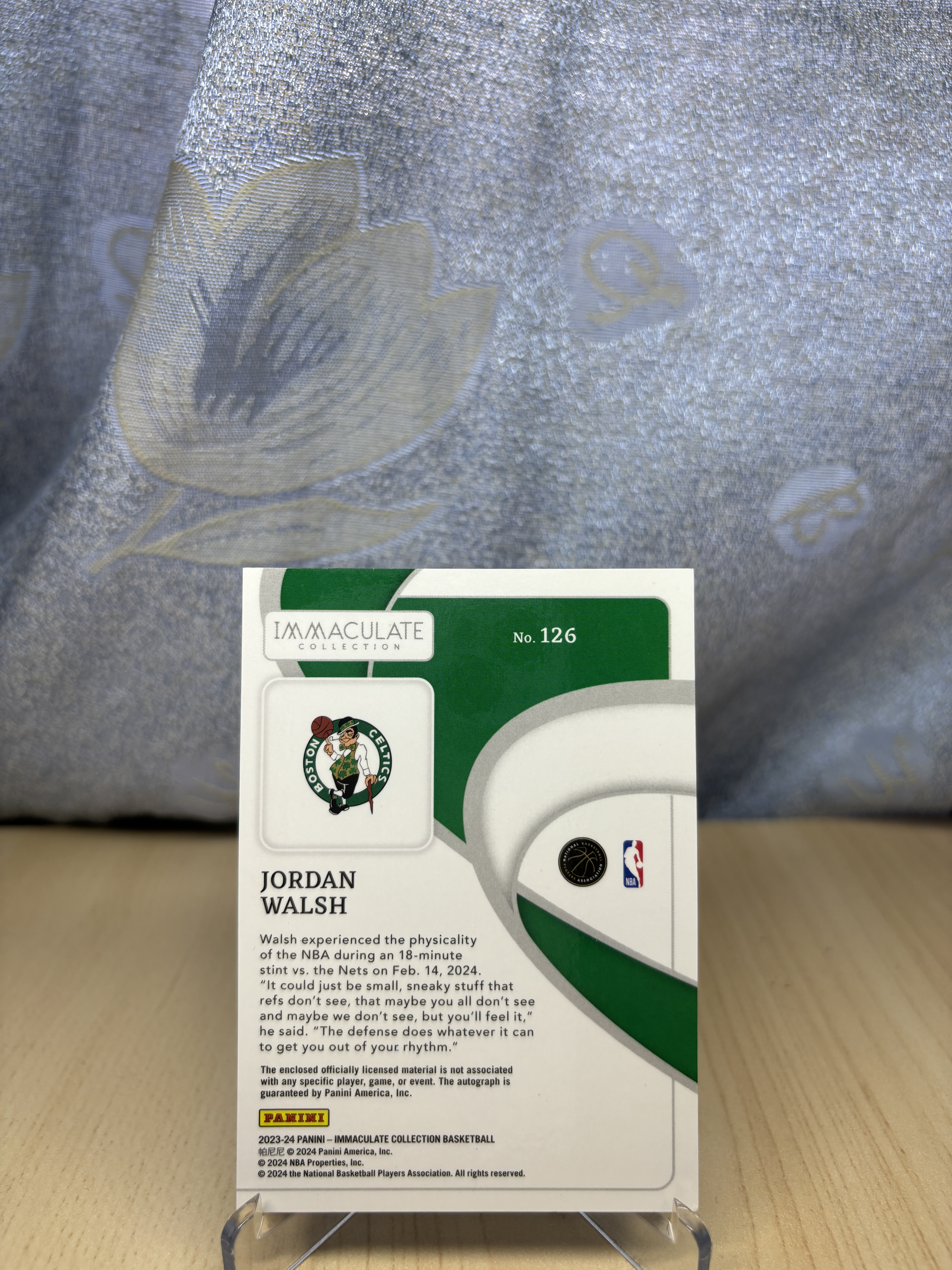 2023-24 Panini Immaculate Collection Jordan Walsh RC 凯尔特人 乔丹 沃尔什 新秀RC 签字 10/27编签 patch