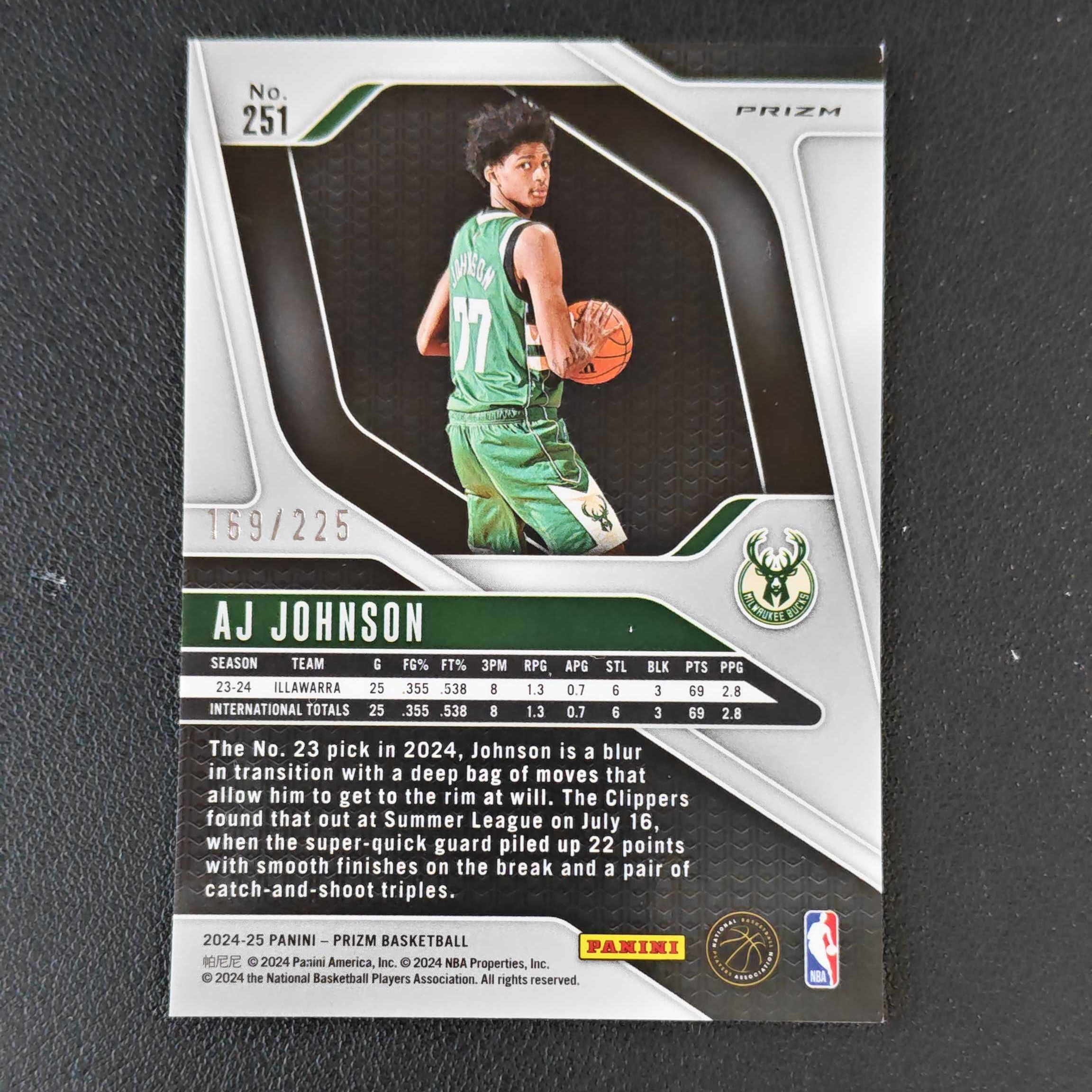 2024-25 Panini Prizm AJ Johnson RC Prizm AJ 约翰逊 RC 新秀 青碎冰折 225编 雄鹿 细节如图