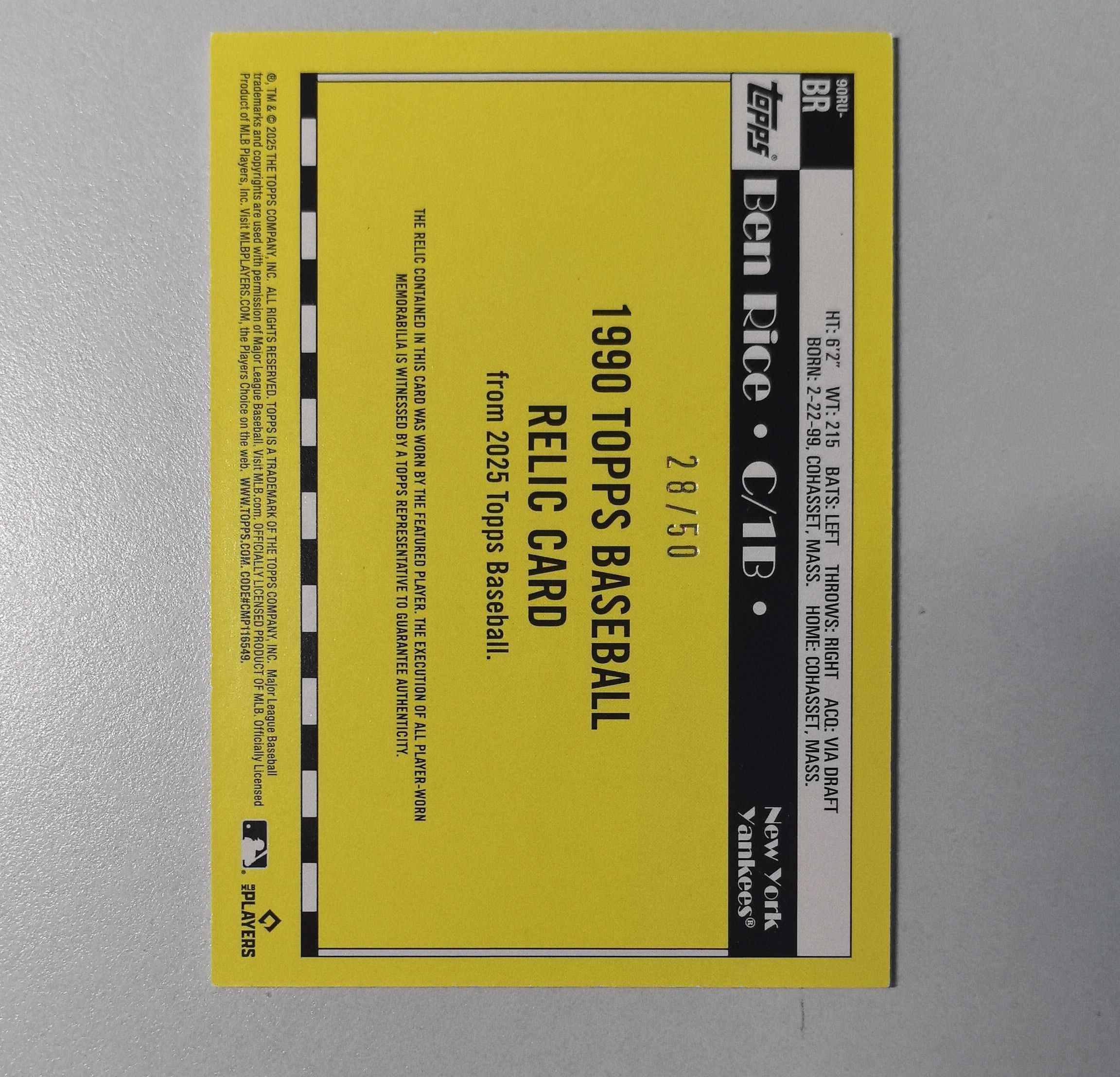 2025 Topps 【锡安代卖】 累计照常 棒球mlb series update 35周年新秀实物 50编 纽约洋基热门新秀 Ben rice 本大米 卡品如图 三角肉