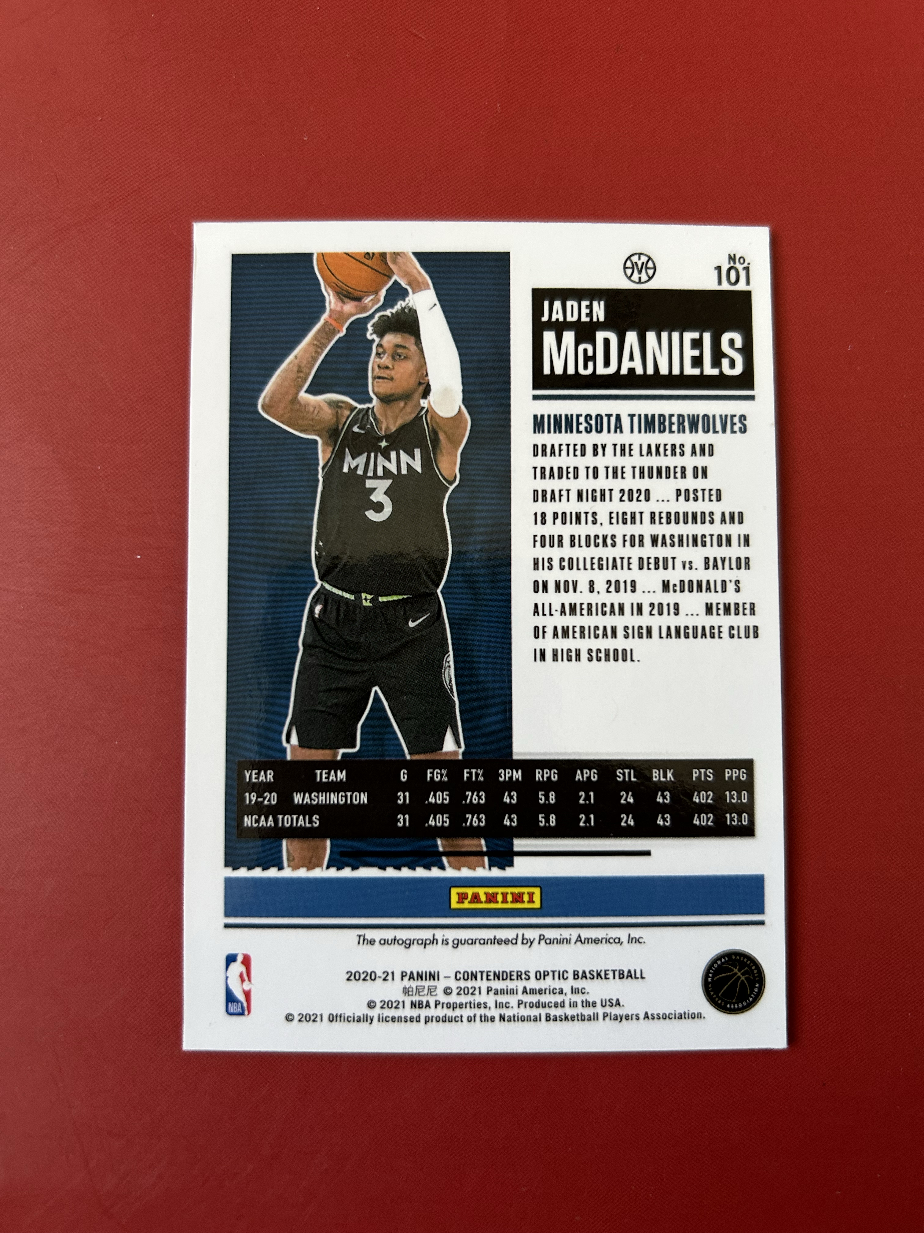 2020-21 Panini Contenders Jaden McDaniels RC 杰登 麦克丹尼尔斯 折射 银折 签字 卡签 新秀年 收藏必备