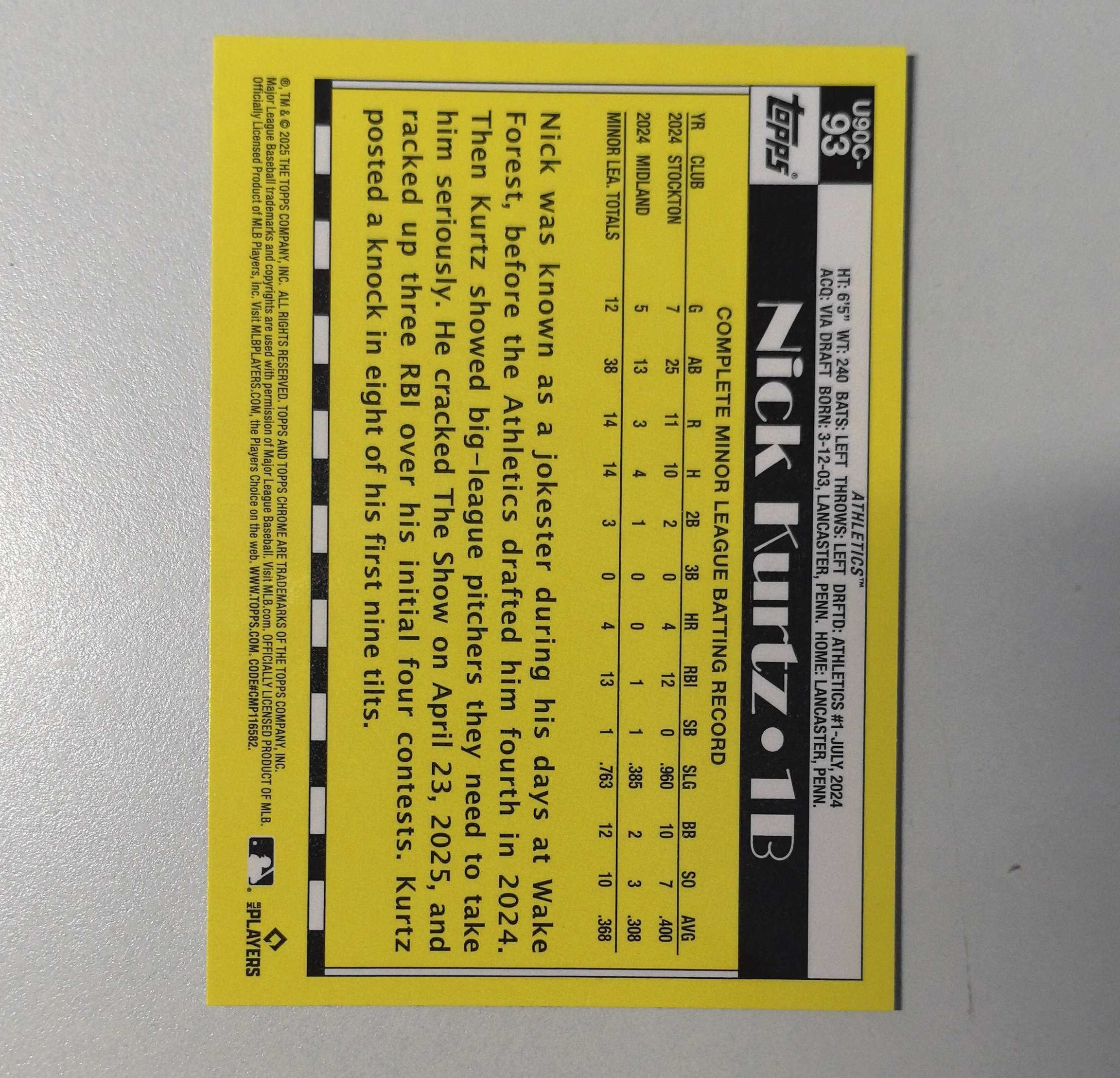 2025 Topps 【锡安代卖】 累计照常 棒球mlb series update 35周年复古mojo折 奥克兰运动家 最佳新秀 尼克库尔茨 Nick kurtz 卡品如图 三角肉