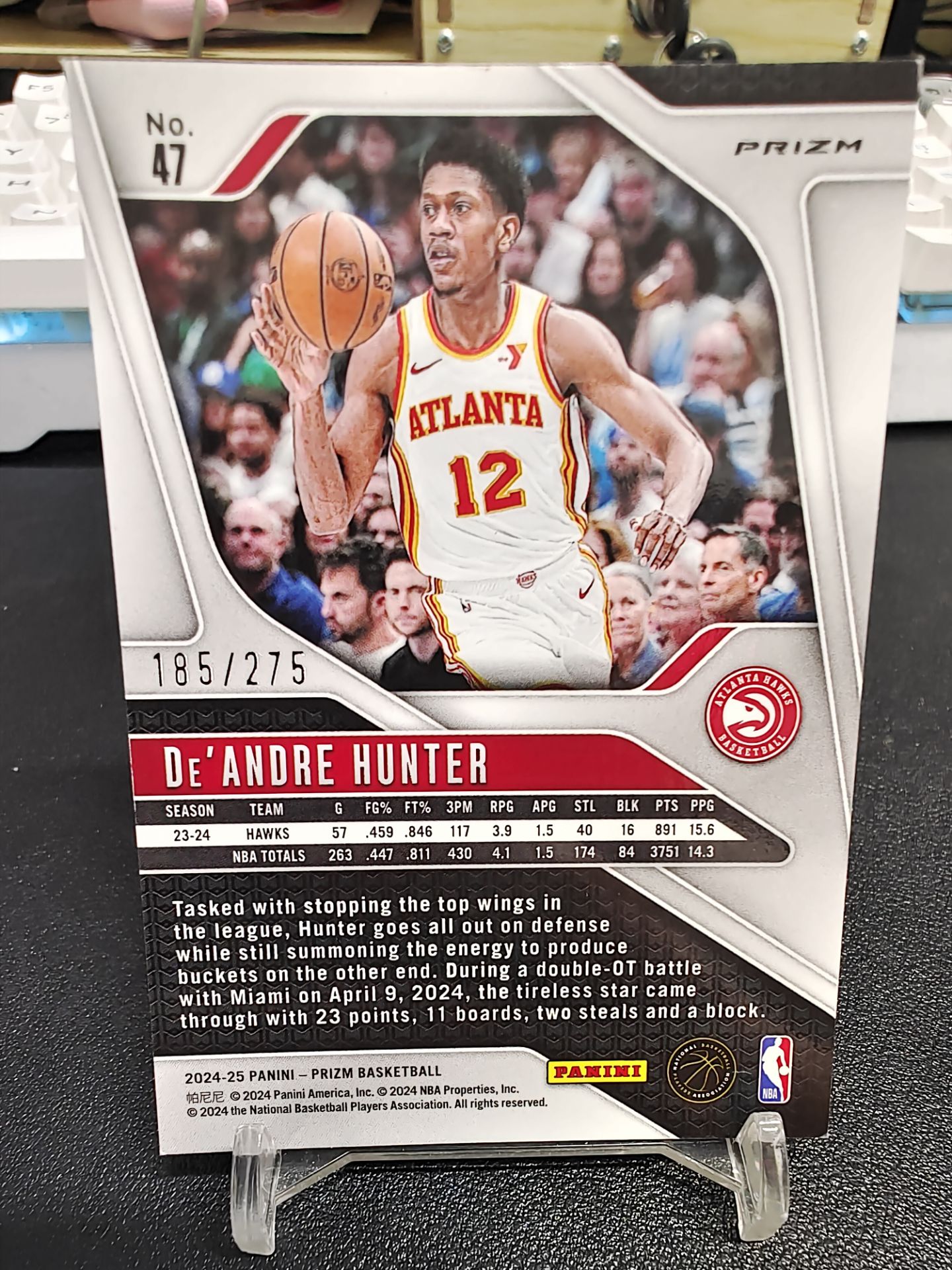 【浩行拍卖 截标预付82%】2024-25 panini prizm deandre hunter 老鹰 德安德烈 亨特 白镭射线 折射 185/275编 专收必备 瑕疵看图「烂曼」1116E01恁