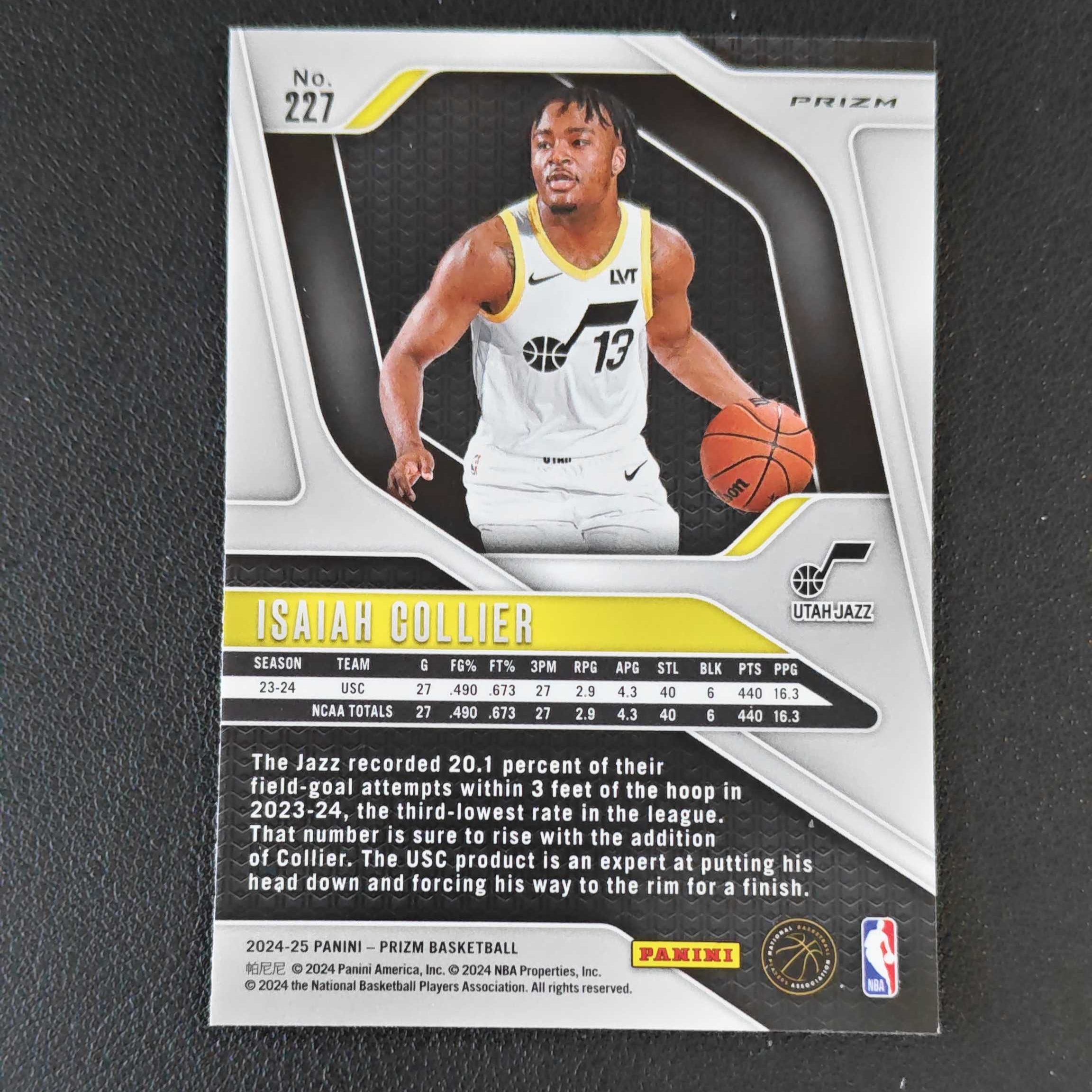 2024-25 Panini Prizm Isaiah Collier RC PZ 爵士 以赛亚科利尔 粉碎冰折射 新人RC 卡品如图
