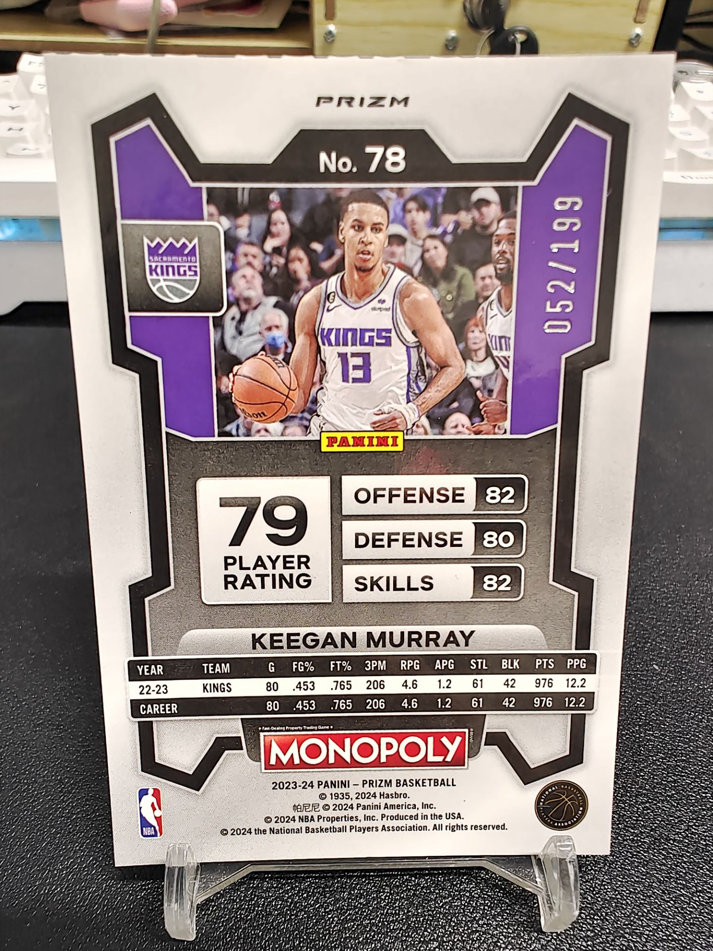 【浩行拍卖 截标预付82%】2023-24 panini prizm keegan murray 国王 基根 默里 穆雷 蓝折 折射 MONOPOLY 大富翁 52/199编 专收必备 瑕疵看图「烂曼」1116E01恁