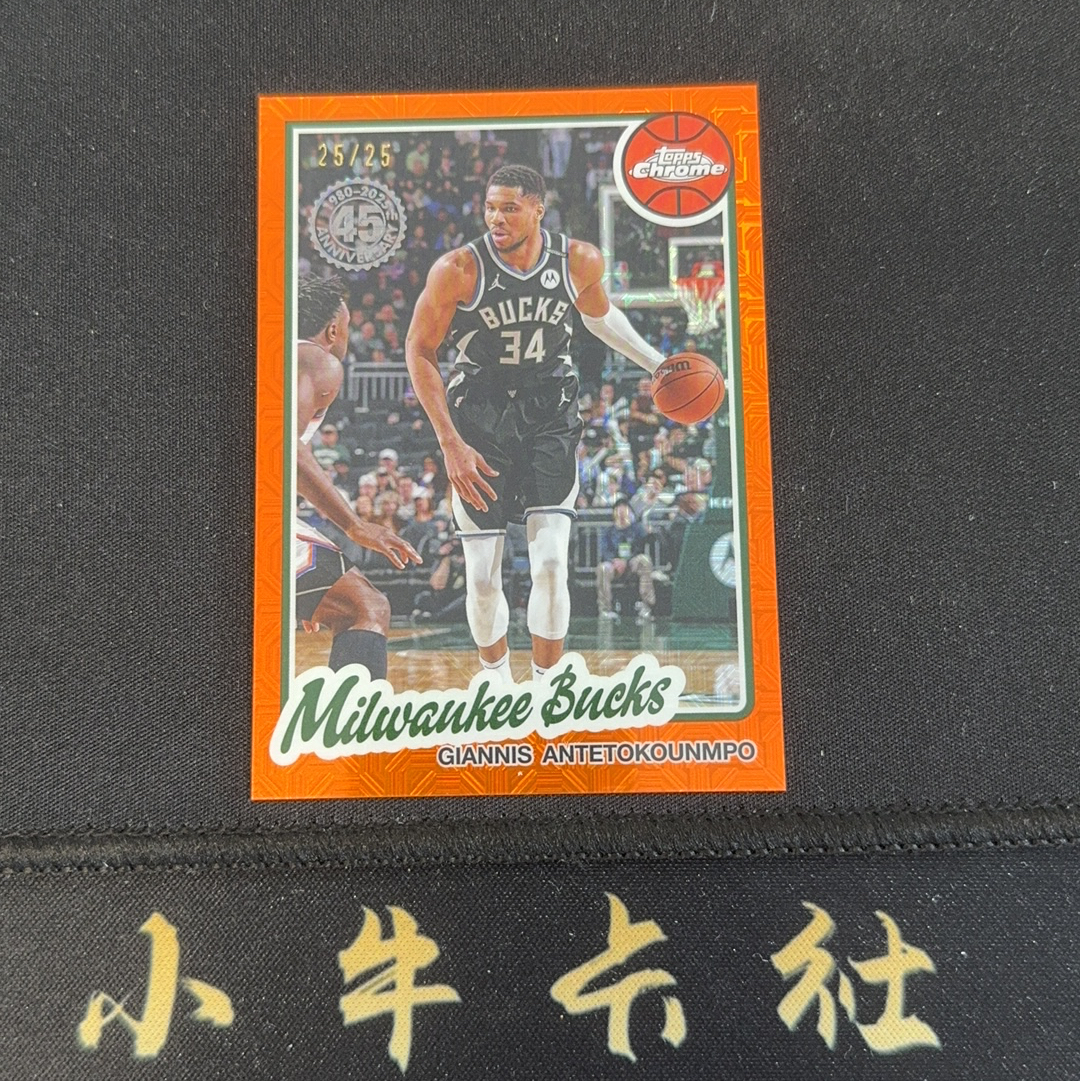 2025 Topps Chrome Giannis Antetokounmpo 雄鹿 字母哥 阿德托昆博 45周年复古 橙MOJO折 25/25编 尾编 微瑕如图 lwq