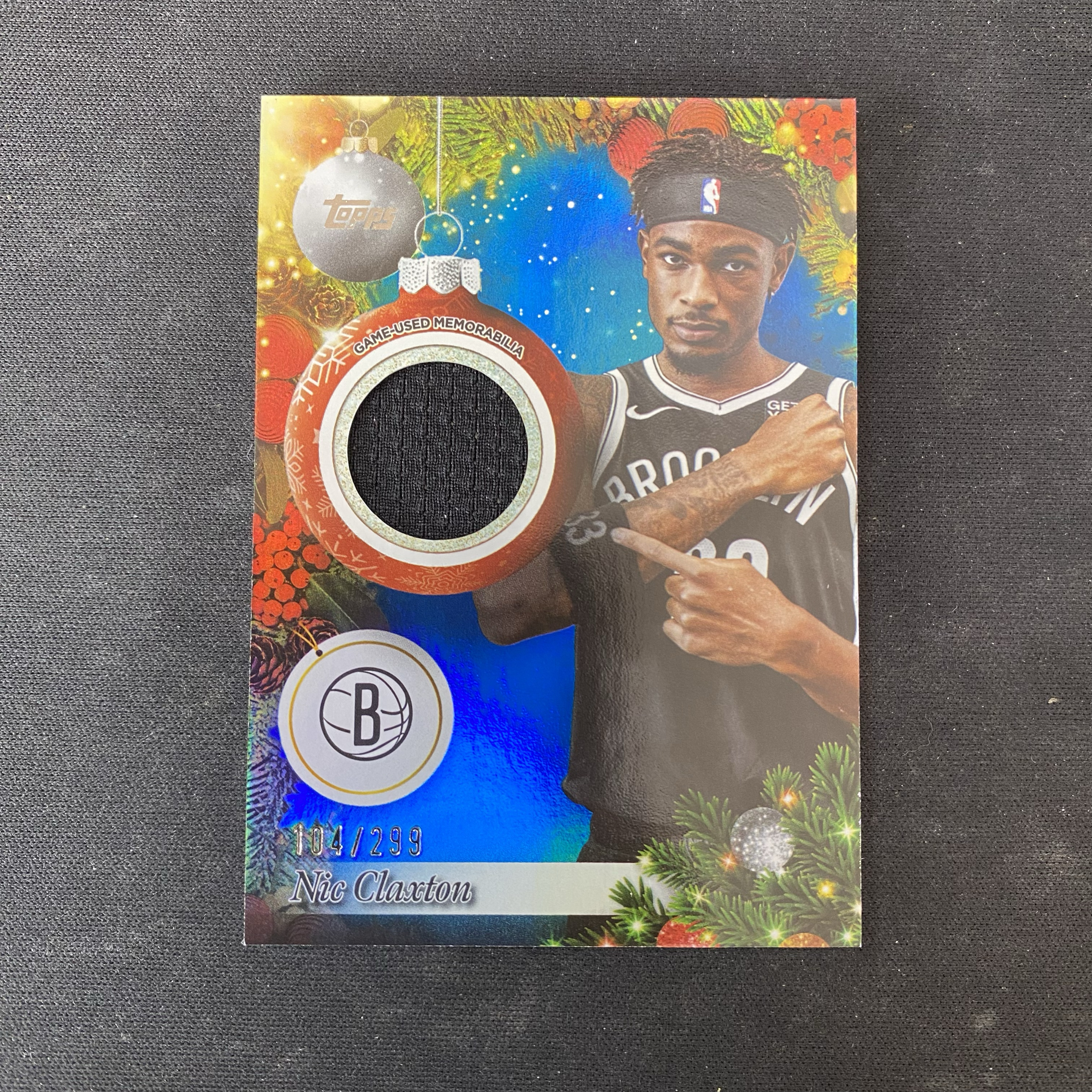 2025 Topps Holiday Nic Claxton 【星集卡代卖】dj1119 假日系列 尼克 克拉克斯顿 假日盒独占 球员遗产物料 篮网 特卡 299编 蓝折 折射