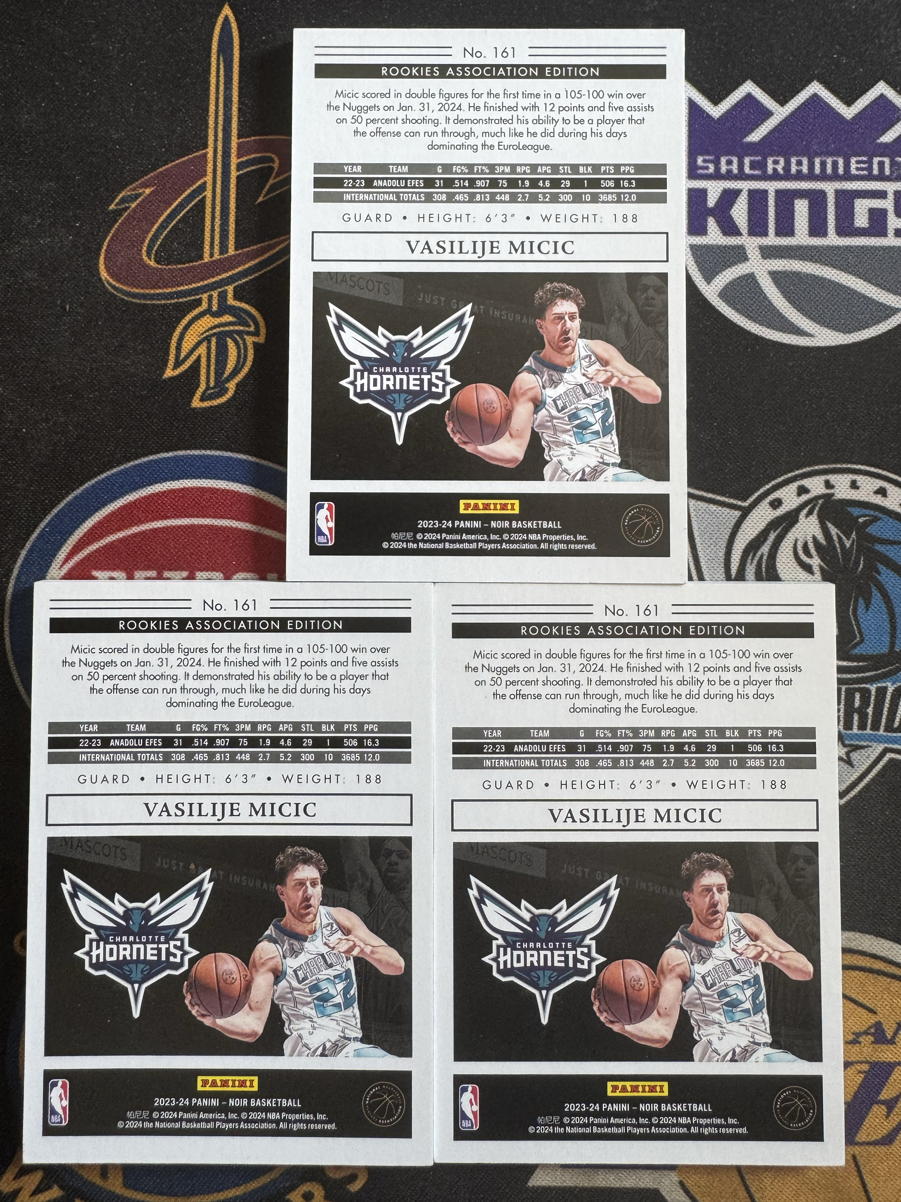 2023-24 Panini Noir Vasilije Micic RC 米西奇 99编 黄蜂 诺尔 队标 三张打包 瑕疵如图