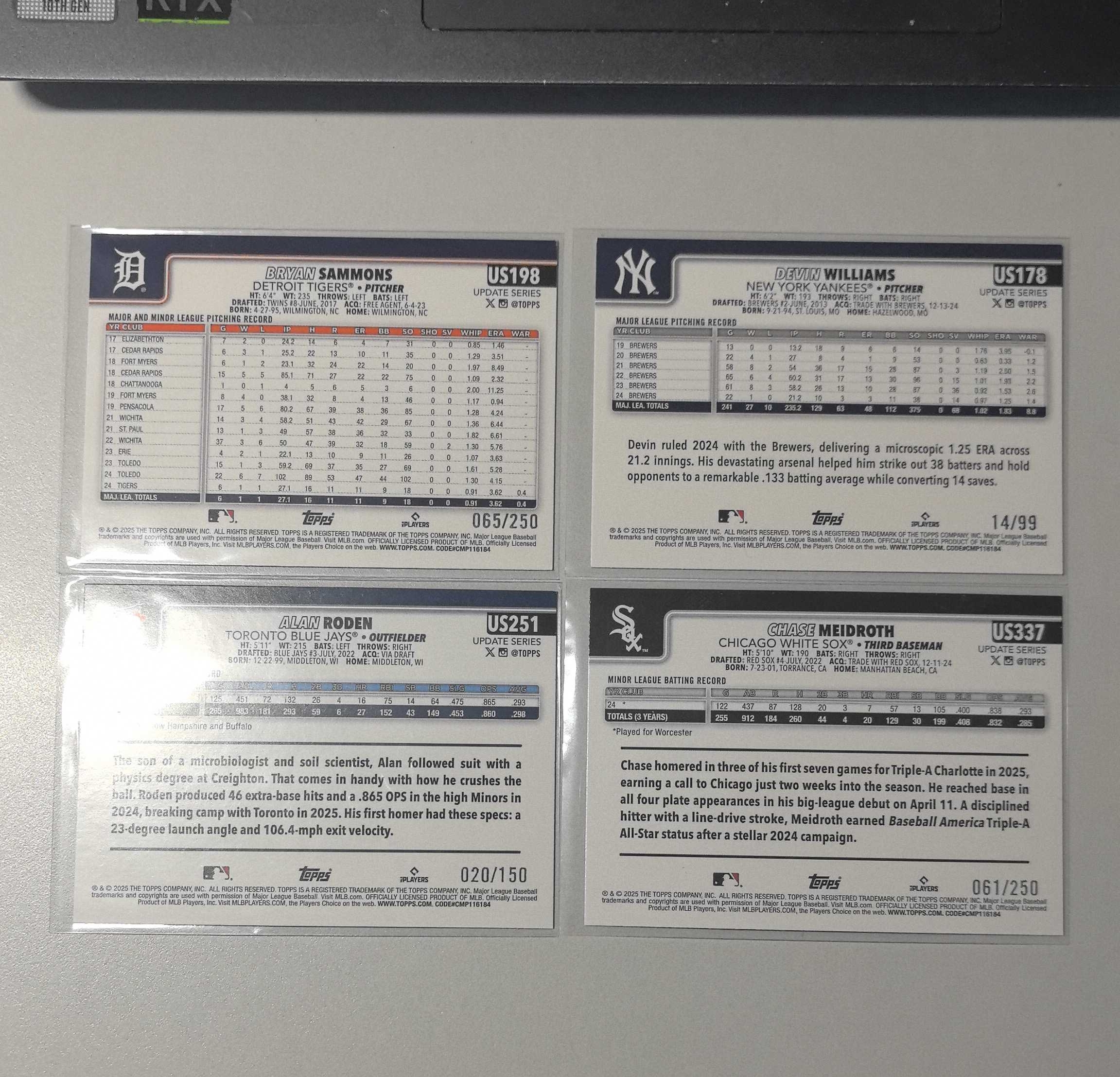 2025 Topps 【锡安代卖】 累计照常 棒球mlb series update 蓝平行150编紫平行250编绿平行99编 新秀alan roden meidroth带队 卡品如图 三角肉