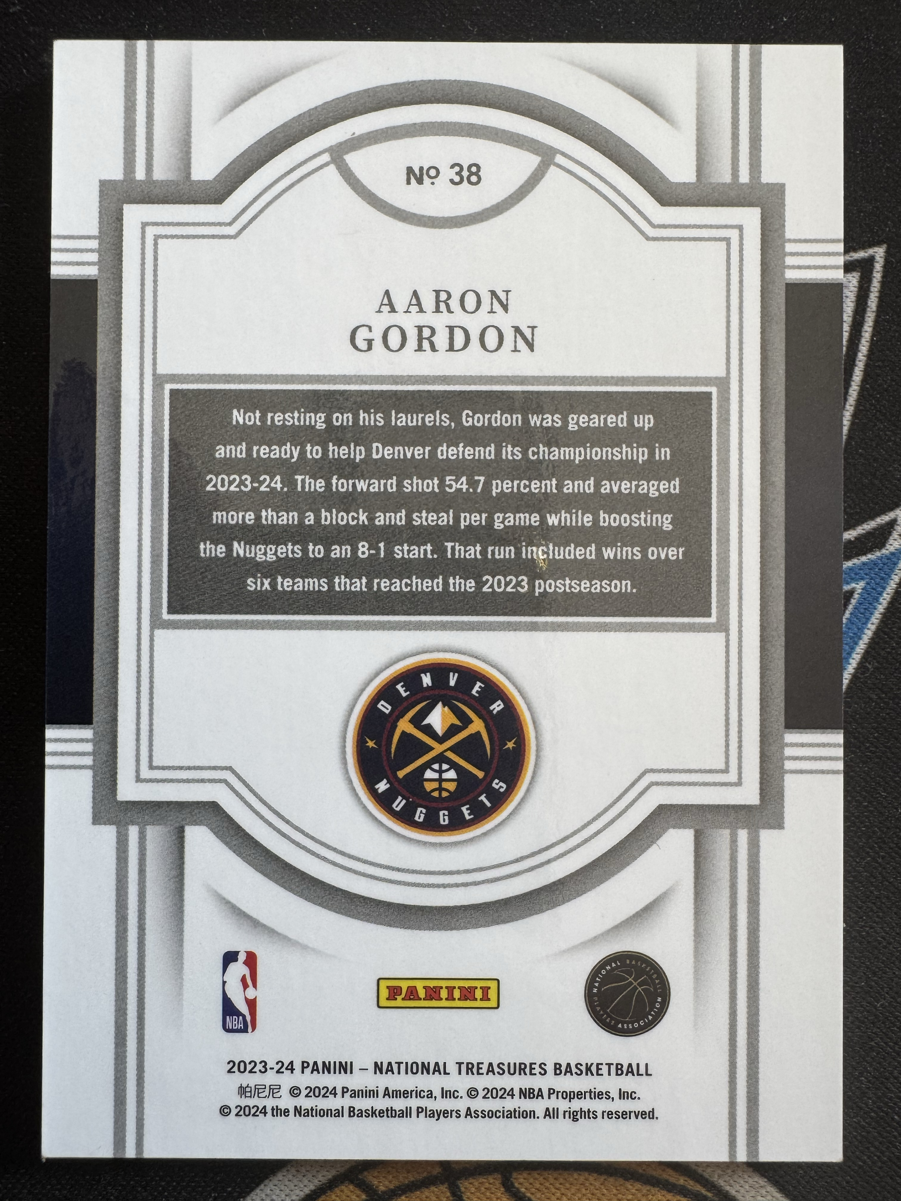 2023-24 Panini National Treasures Aaron Gordon RC 阿隆 戈登 掘金 空接之王 06/33 红平行 国宝 base 彩虹套