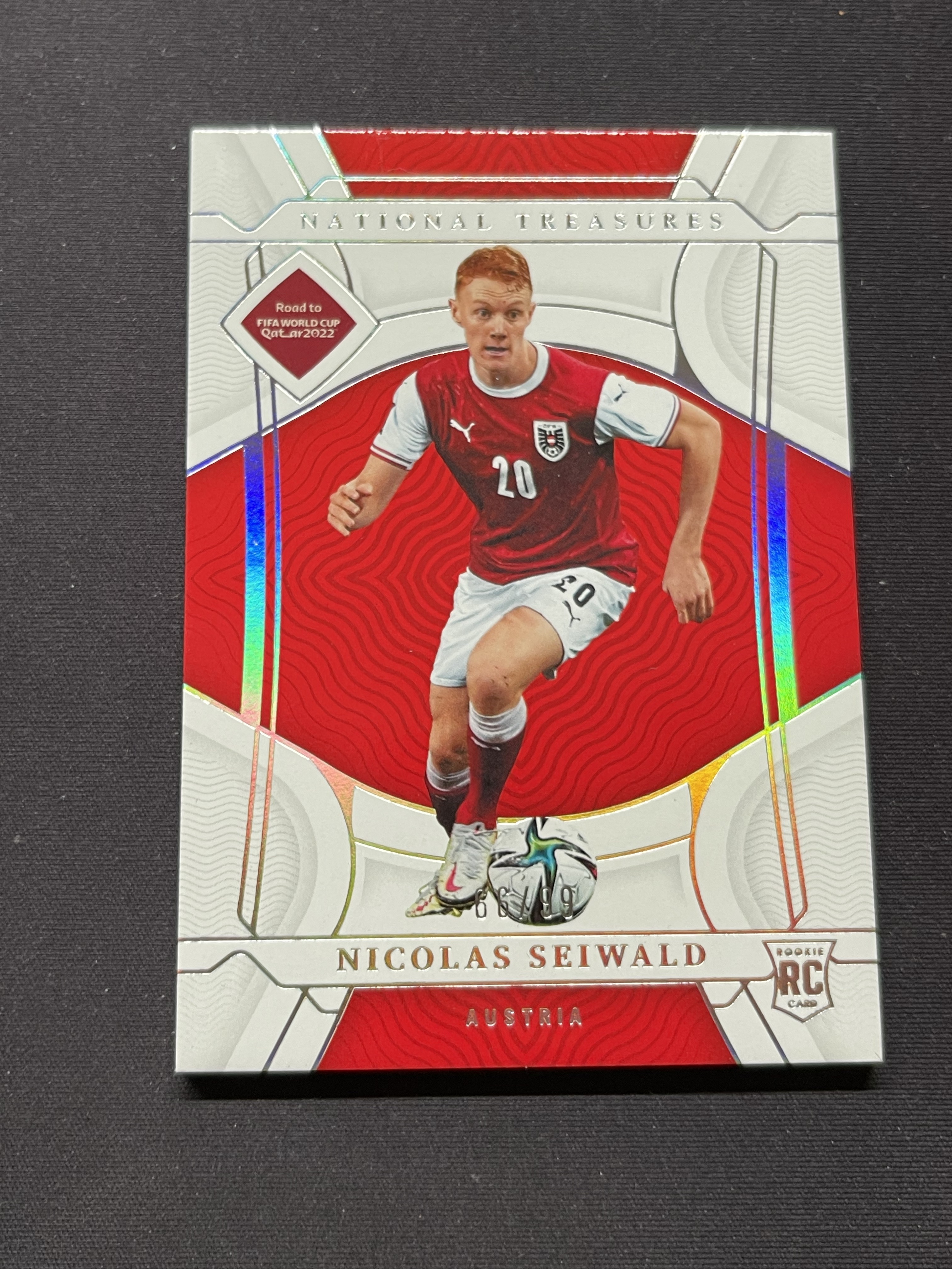 2022 Panini National Treasures Nicolas Seiwald RC 国宝 世界杯 奥地利 尼古拉斯·赛瓦尔德 新秀 base 66/99编 瑕疵如图「老夫子」豆汁