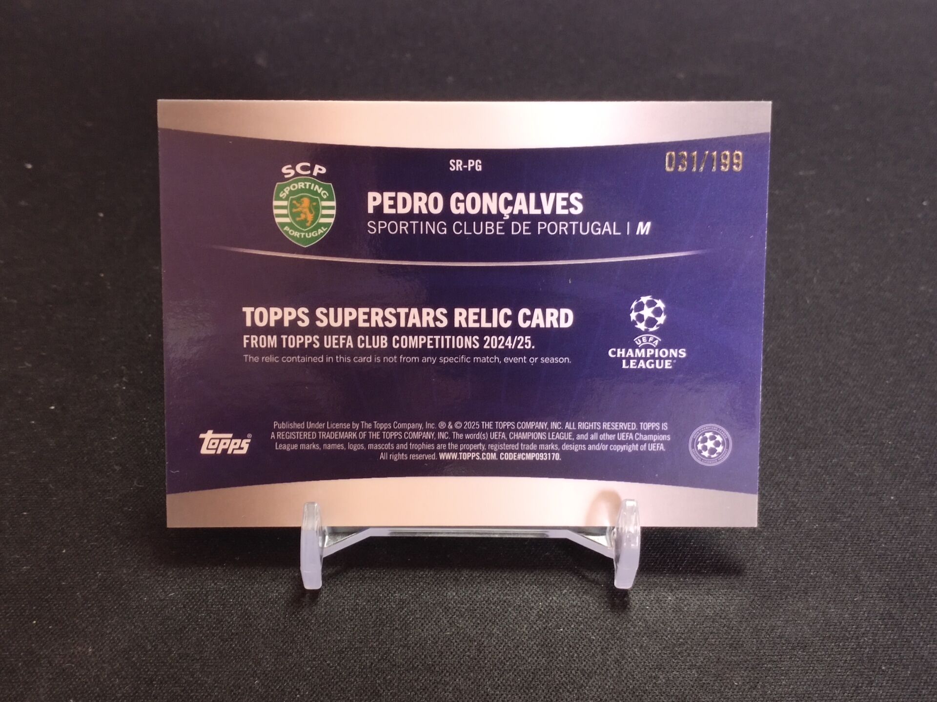 【浩行拍卖 截标预付82%】2025 topps pedro goncalves 欧冠 葡萄牙体育 佩德罗 贡萨尔维斯 绿折 折射 球衣 物料 双色 31/199编 专收必备 瑕疵看图「林室」1116P02緲