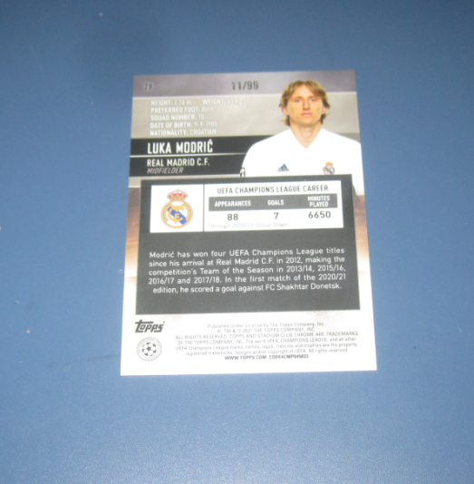 2020-21 Topps Stadium Club Luka Modric 【凯哥拍卖】 欧冠 竞技场 球星卡 折射 限量 99编 皇家马德里 莫德里奇 极微小瑕疵 品相如图