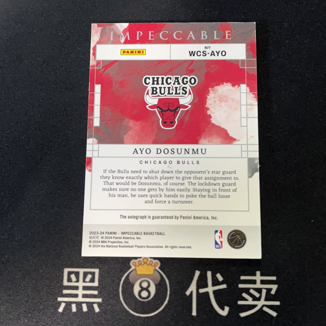 79【黑8代卖】2023-24 Panini Impeccable 小真金 Ayo Dosunmu 阿约 多森姆 签字 卡签 ink签 67/99编 卡品如图【月亮】