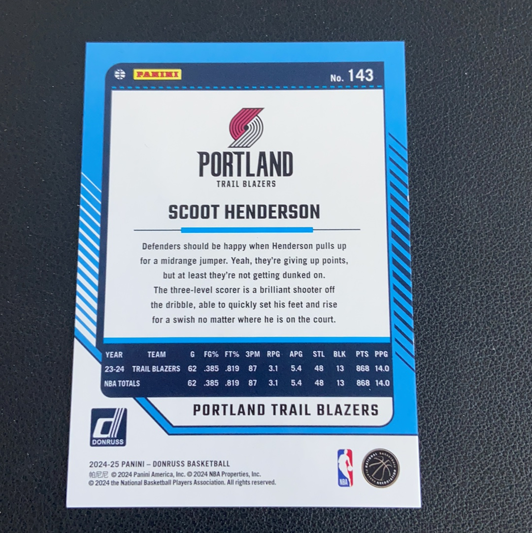 2024-25 Panini Donruss Scoot Henderson 杜蕾斯开拓者 亨德森 99编 红佛光折 收藏必备 折射