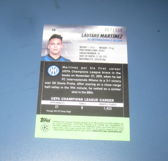 2021-22 Topps Stadium Club Lautaro Martínez 【凯哥拍卖】 欧冠 竞技场 球星卡 折射 限量 150编 国际米兰 劳塔罗马丁内斯 极微小瑕疵 品相如图