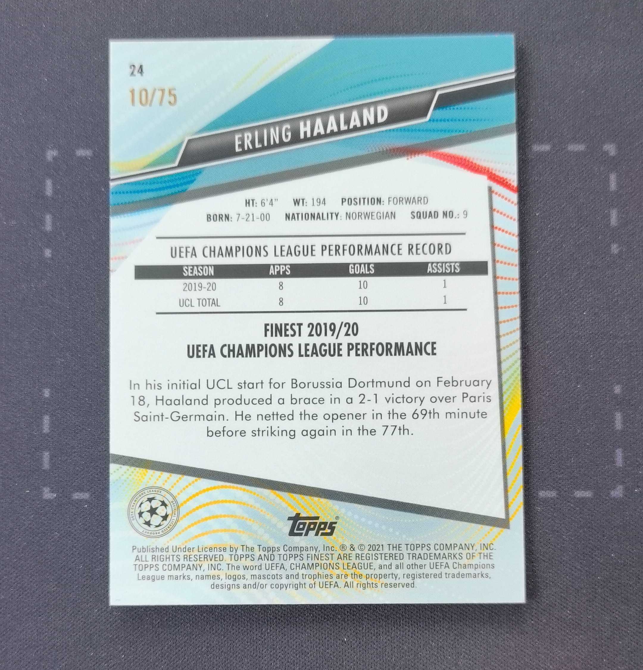 2020-21 Topps Finest Erling Haaland 欧冠 多特蒙德 埃尔林 哈兰德 青折 75编 微瑕如图