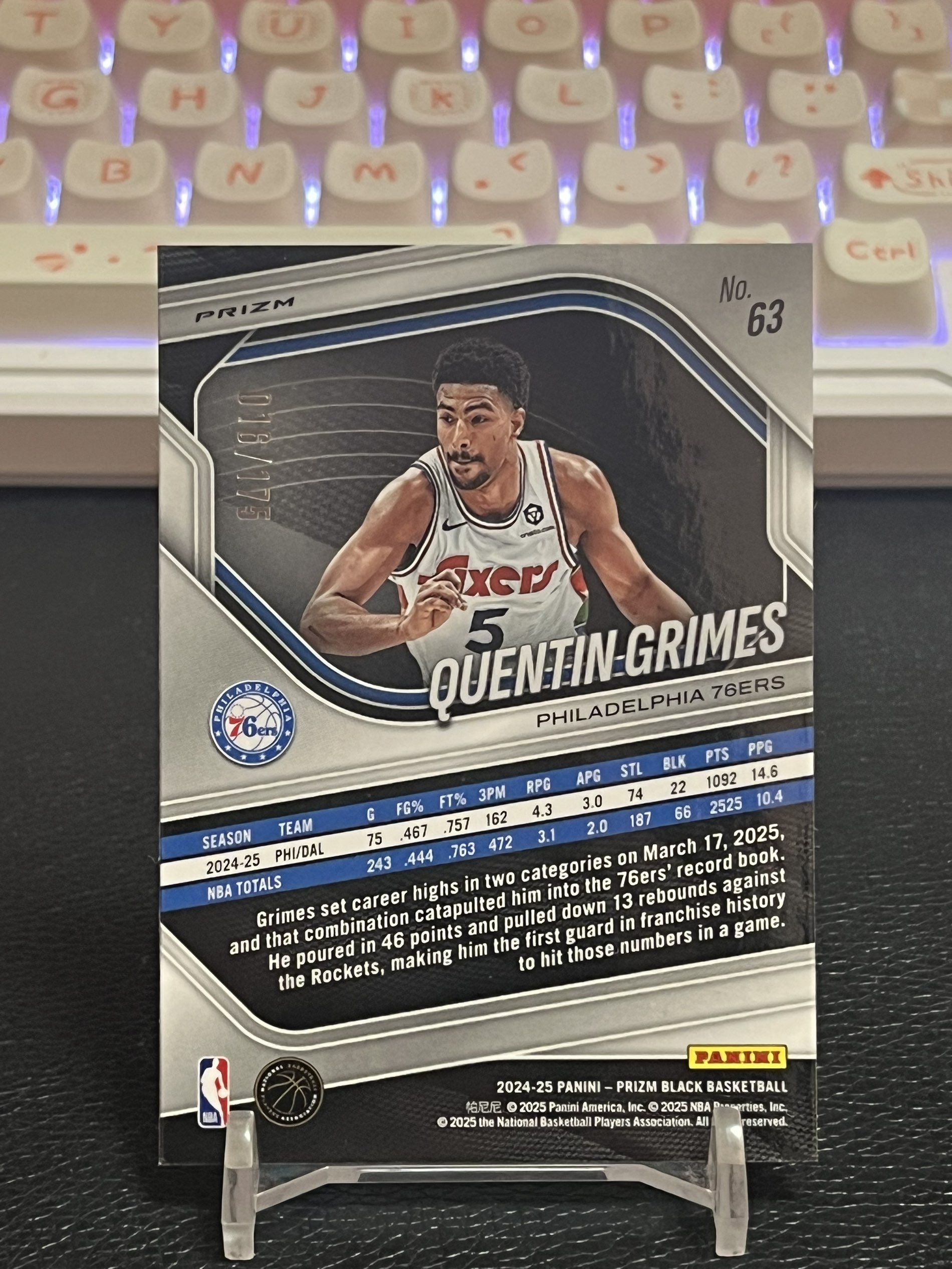 【浩行拍卖 截标预付82%】2024-25 panini prizm black quentin grimes 76人 昆廷 格兰姆斯 白折 折射 16/175编 专收必备 瑕疵看图「晴念」1116F02祺