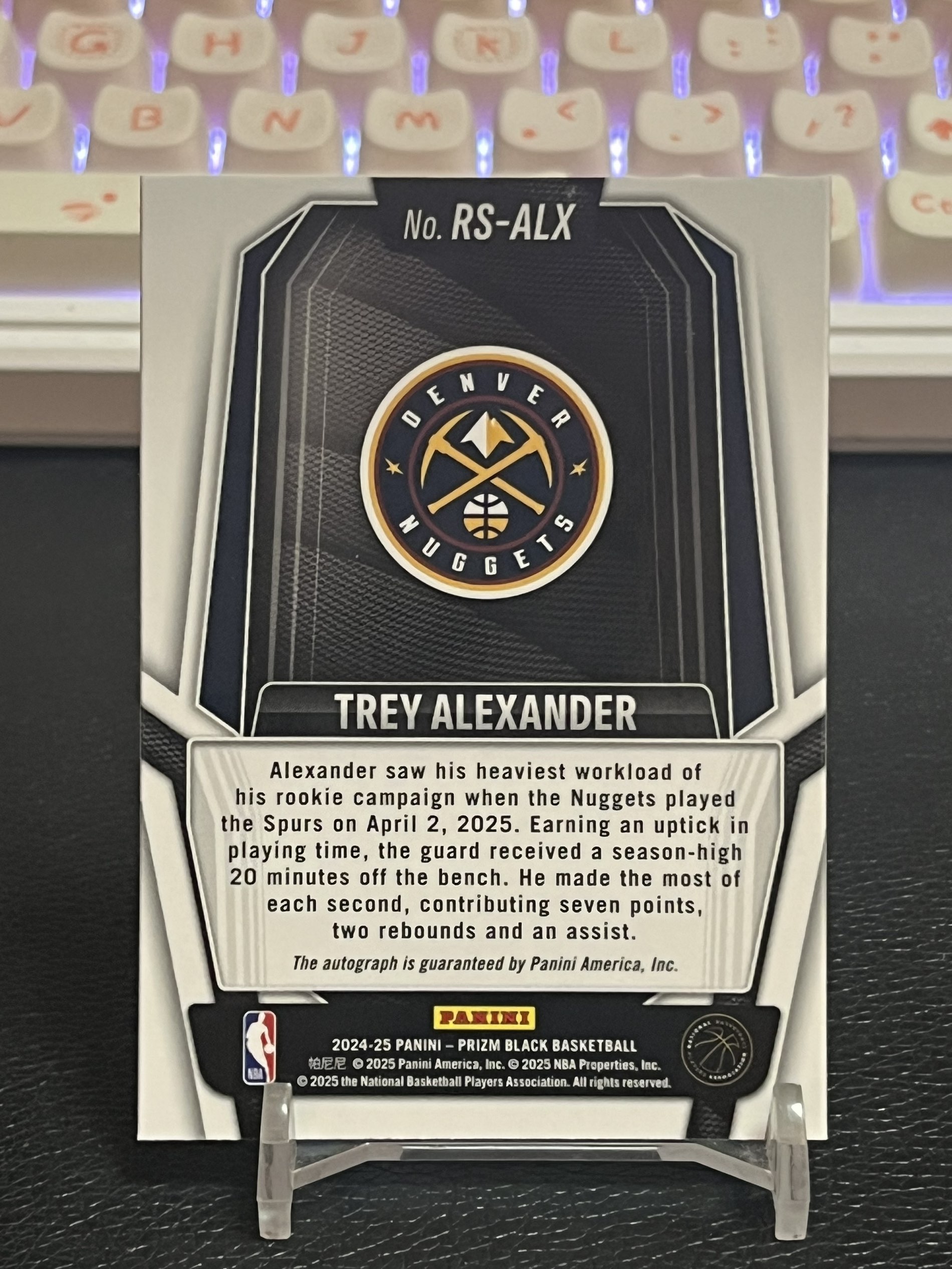 【浩行拍卖 截标预付82%】2024-25 panini prizm black trey alexander 掘金 特雷 亚历山大 新秀 rc 签字 专收必备「晴念」1116F02祺