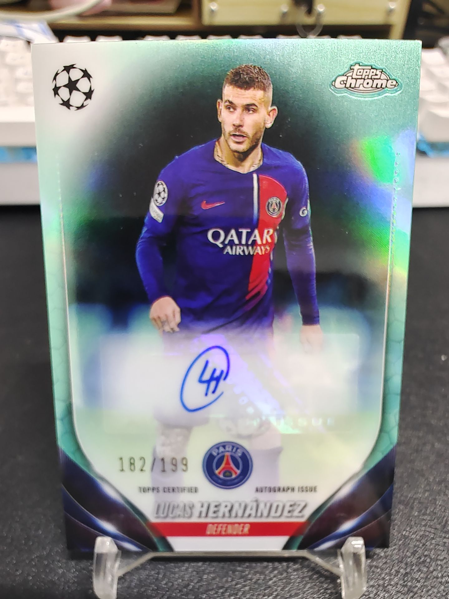 【浩行拍卖 截标预付82%】2024 topps chrome Lucas Hernandez 欧冠 巴黎圣日耳曼 卢卡 埃尔南德斯 签字 青折 折射 182/199编 专收必备 瑕疵看图「烂曼」1116E02恁