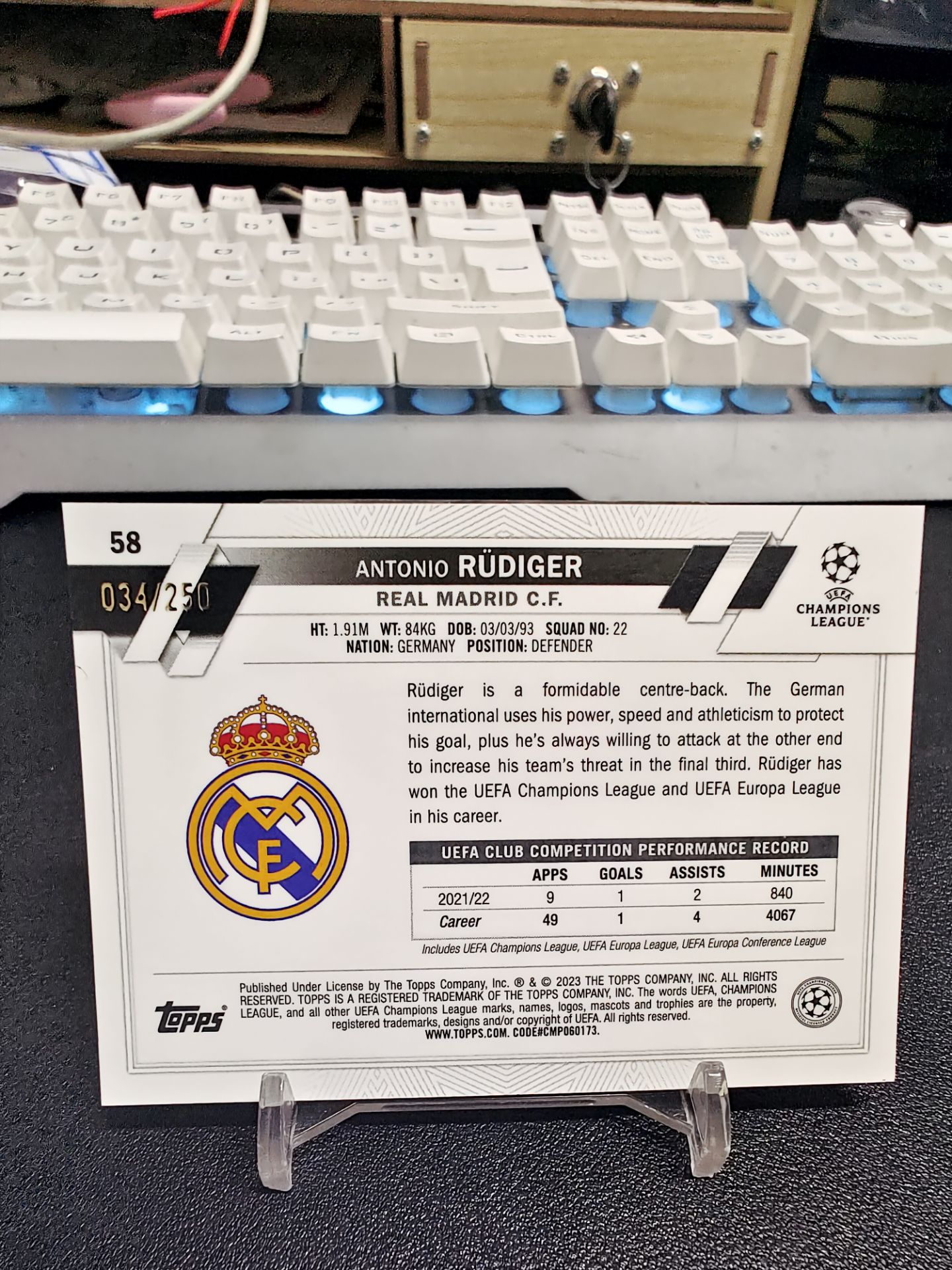 【浩行拍卖 截标预付82%】2023 topps chrome Antonio Rudiger 欧冠 皇马 安东尼奥 吕迪格 粉格子 棋盘折 折射 34/250编 专收必备 瑕疵看图「烂曼」1116E02恁