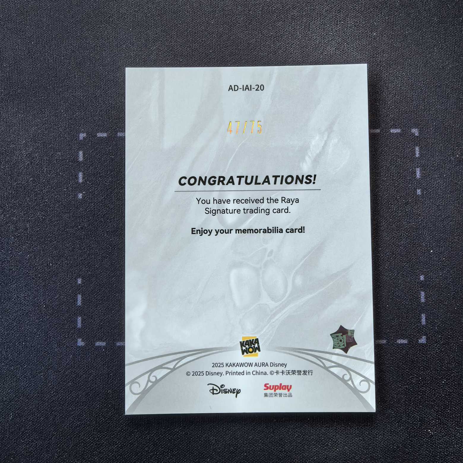 2025 Kakawow 卡卡沃 迪士尼 Disney AURA 印象珍藏系列 Raya 拉雅 烫金签字 印签 黑折 折射 /75编 微瑕如图