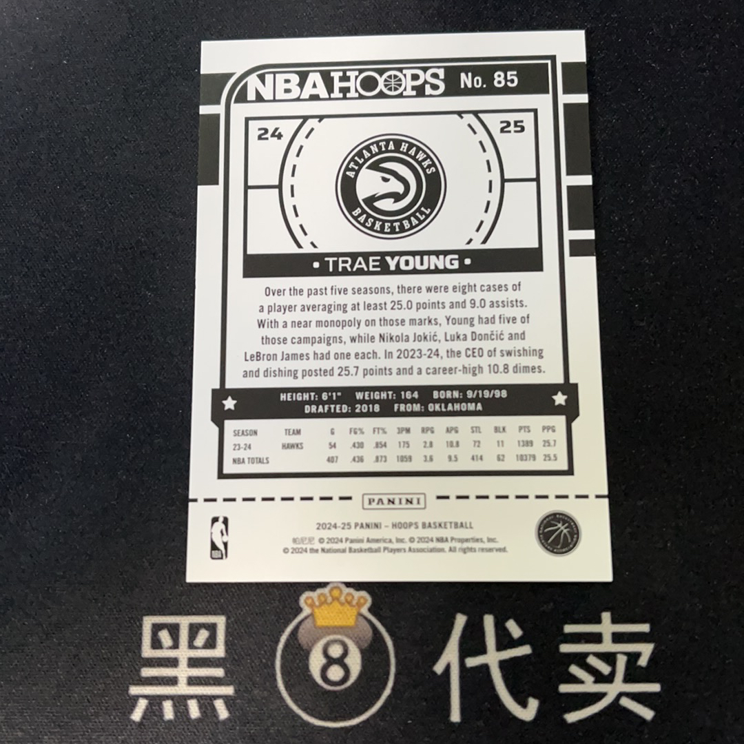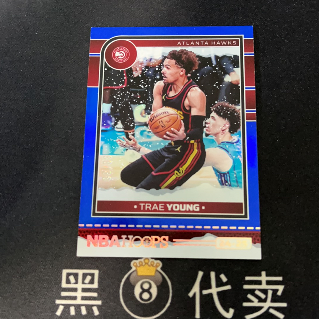 92【黑8代卖】2024-25 Panini Hoops系列 Trae Young 纽约市长 特雷杨 吹杨 蓝折 88/88编 折射 尾编 卡品如图【月亮】
