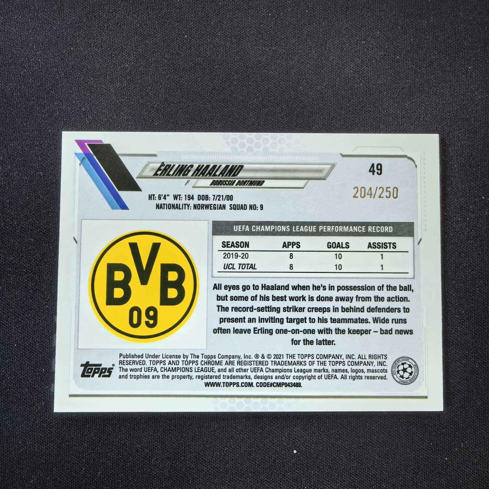 中标拍品不支持累积,请各位买家在中标后72小时(3天)内支付卡款 邮费,付款完成后最长96小时(4天)内发出,寄出后系统更新单号。 ———所有上线拍品均为通行品而非10分评级卡,因此诸如厚卡的白边、尖角小磨白,镜面磨痕,薄卡边角/卡面小瑕疵等各位买家自行通过拍品高清大图辨别,参与竞价视同瑕疵在买家耐受度范围内,中标不予退还。如出售卡片确有存在严重边角问题的,会特别注明。