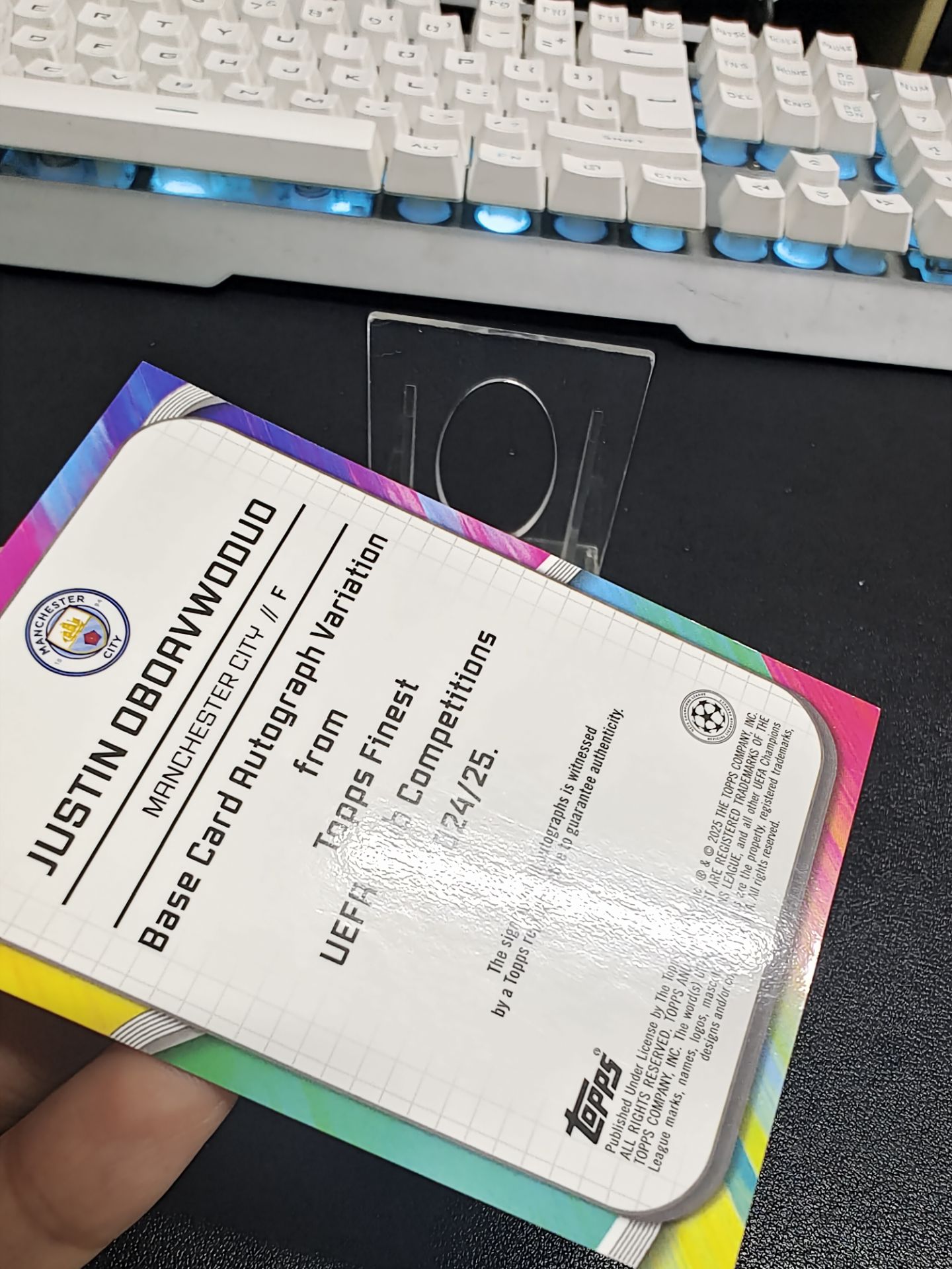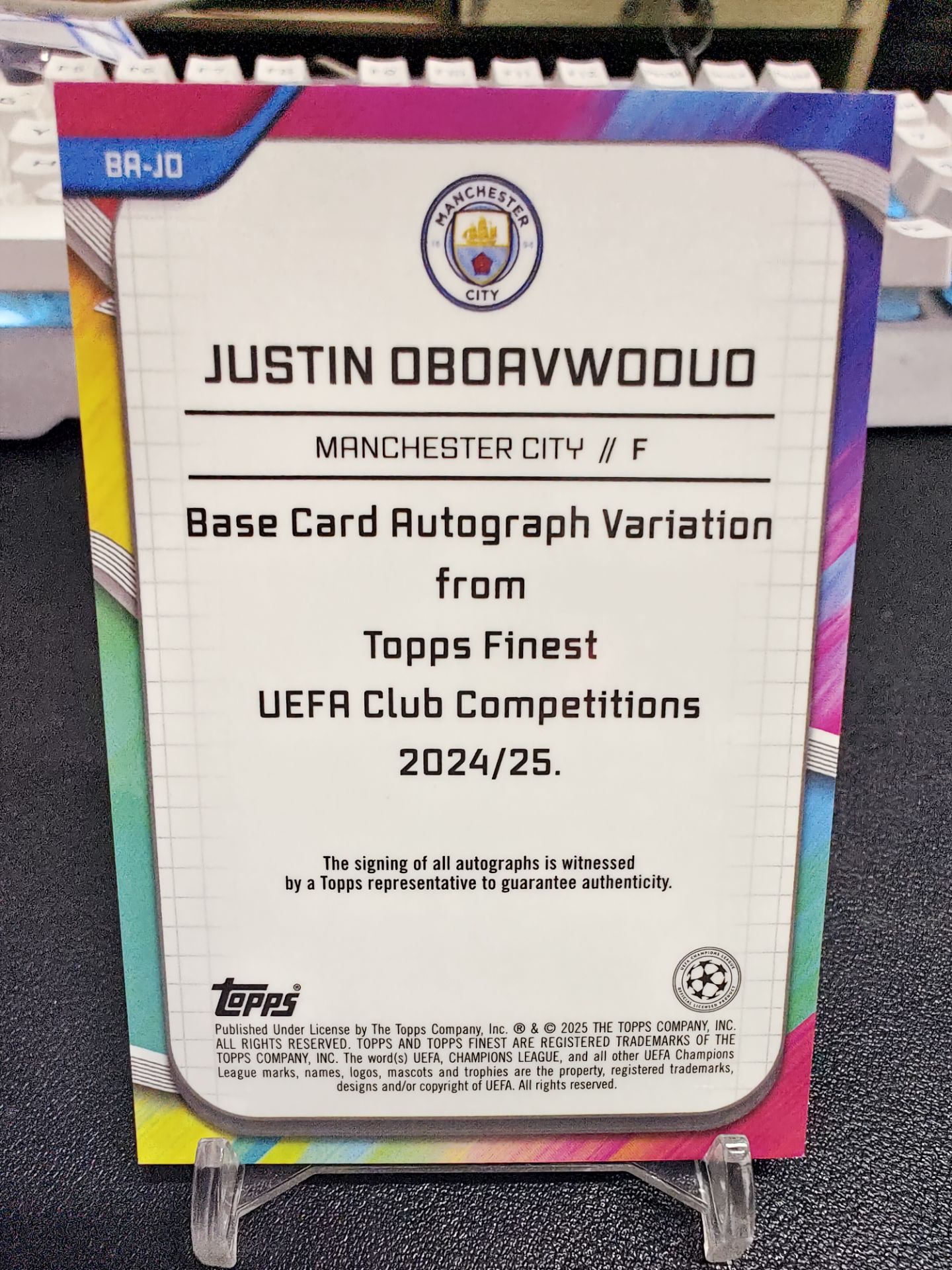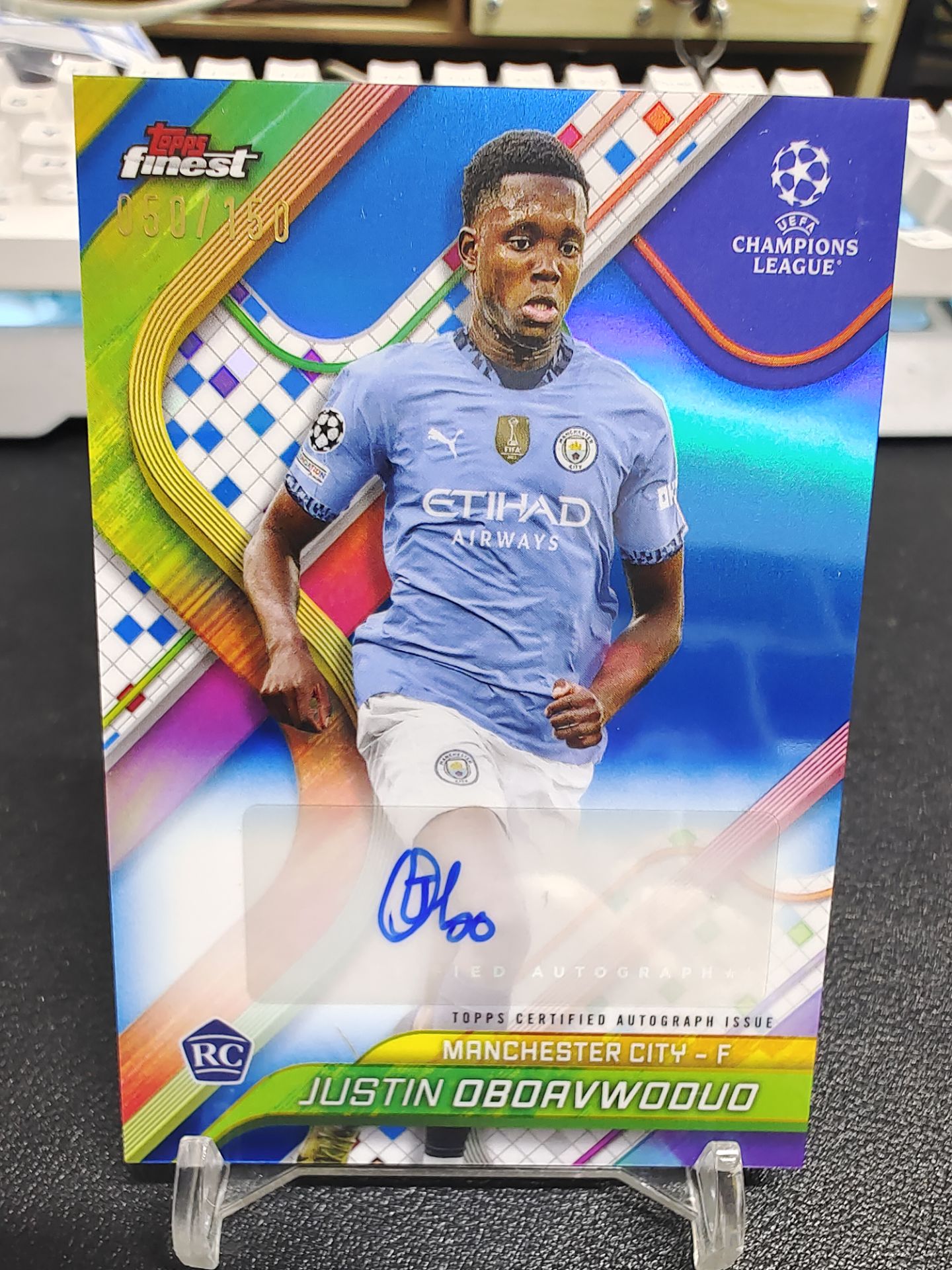 【浩行拍卖 截标预付82%】2025 topps finest Justin Oboavwoduo 欧冠 曼城 贾斯汀 奥博阿沃杜奥 新秀 RC 签字 蓝折 折射 50/150编 专收必备 瑕疵看图「烂曼」1116E03恁