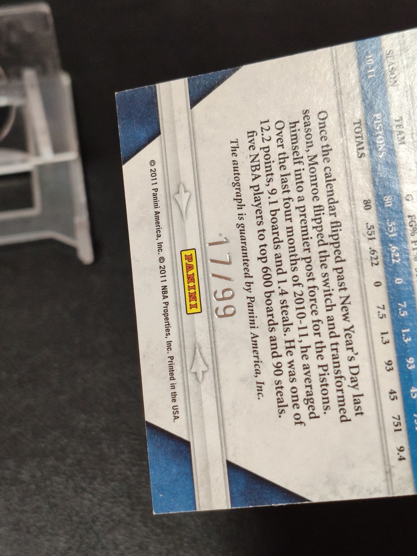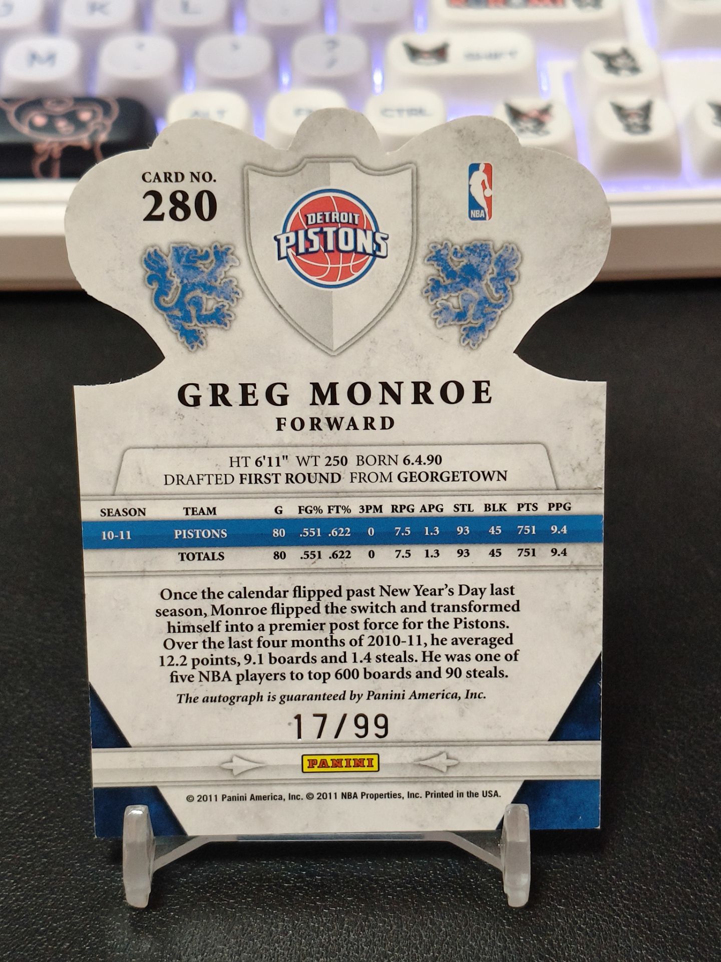 【浩行拍卖 截标预付82%】2011 panini Crown Royale greg monroe 皇冠 活塞 格雷格 门罗 签字 卡签 异形 17/99编 专收必备 瑕疵看图「未然」1116G03兿