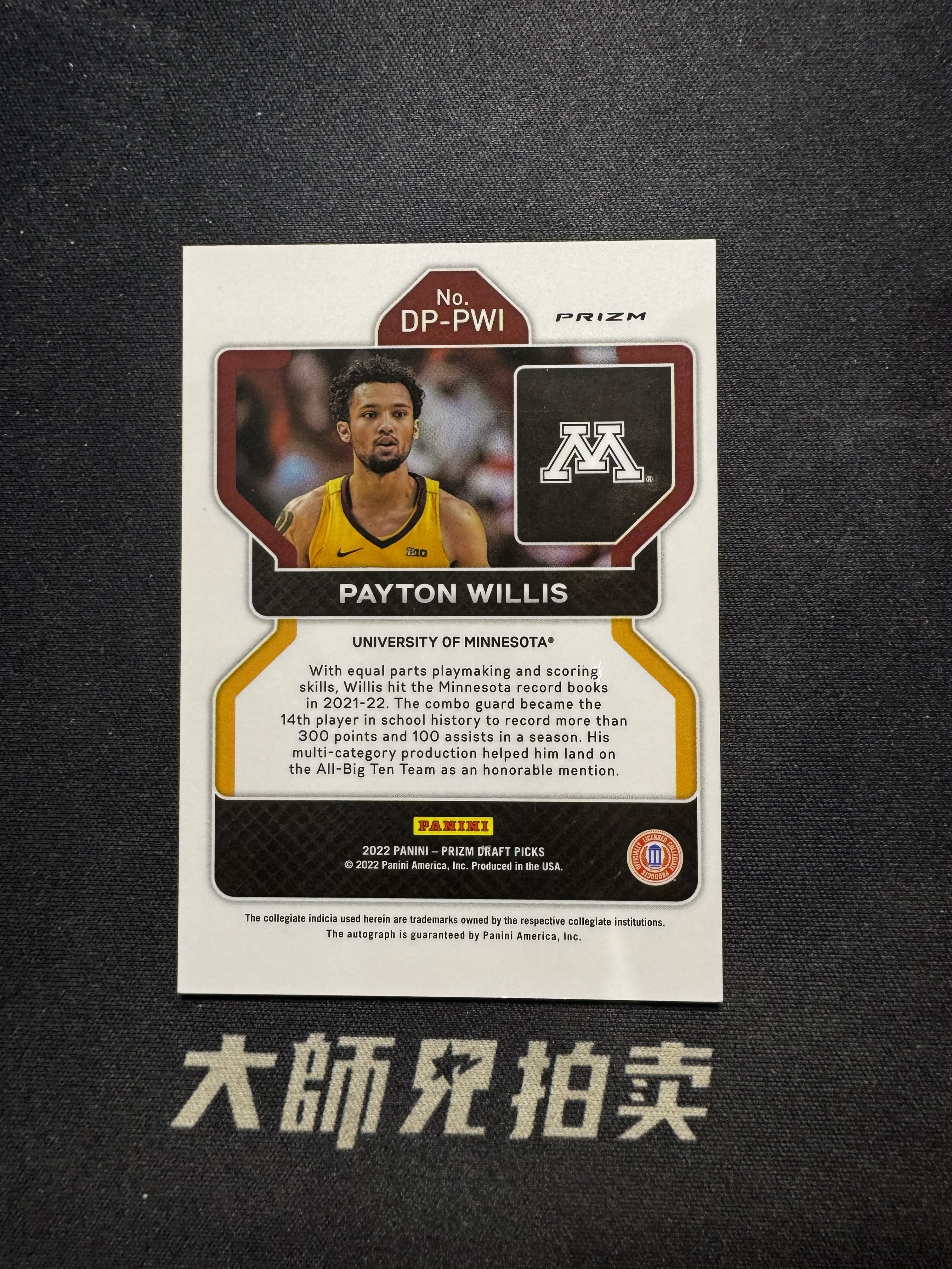 【大师兄拍卖】2022 Panini Prizm Draft Picks payton willis RC 佩顿 威利斯 PZ 明尼苏达大学 签字 绿折 通行品 -大傻-
